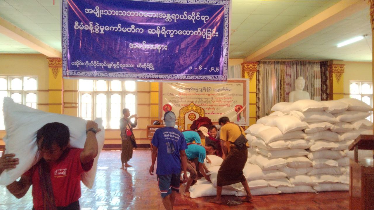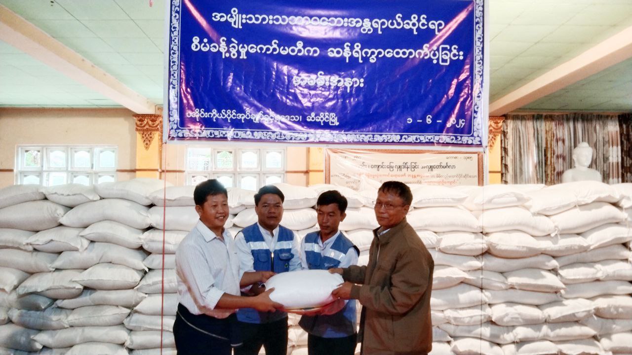 ရှမ်းပြည်နယ်(တောင်ပိုင်း)၊ ပအိုဝ်းကိုယ်ပိုင်အုပ်ချုပ်ခွင့်ရဒေသ၊ ဆီဆိုင်မြို့နယ်အတွင်း ပြန်လည်ဝင်ရောက်နေထိုင်သည့် ဒေသခံပြည်သူများအား အမျိုးသားသဘာဝဘေးအန္တရာယ်ဆိုင်ရာ စီမံခန့်ခွဲမှုကော်မတီမှ တစ်လစာဆန်ရိက္ခာများ ထောက်ပံ့ပေးအပ်ခြင်းကို ယနေ့နံနက် (၉) နာရီခွဲအချိန်က ဇဝနာရာမပရိယတ္တိစာသင်တိုက် ဘုန်းတော်ကြီးကျောင်း၌ ဆောင်ရွက်ခဲ့သည်။