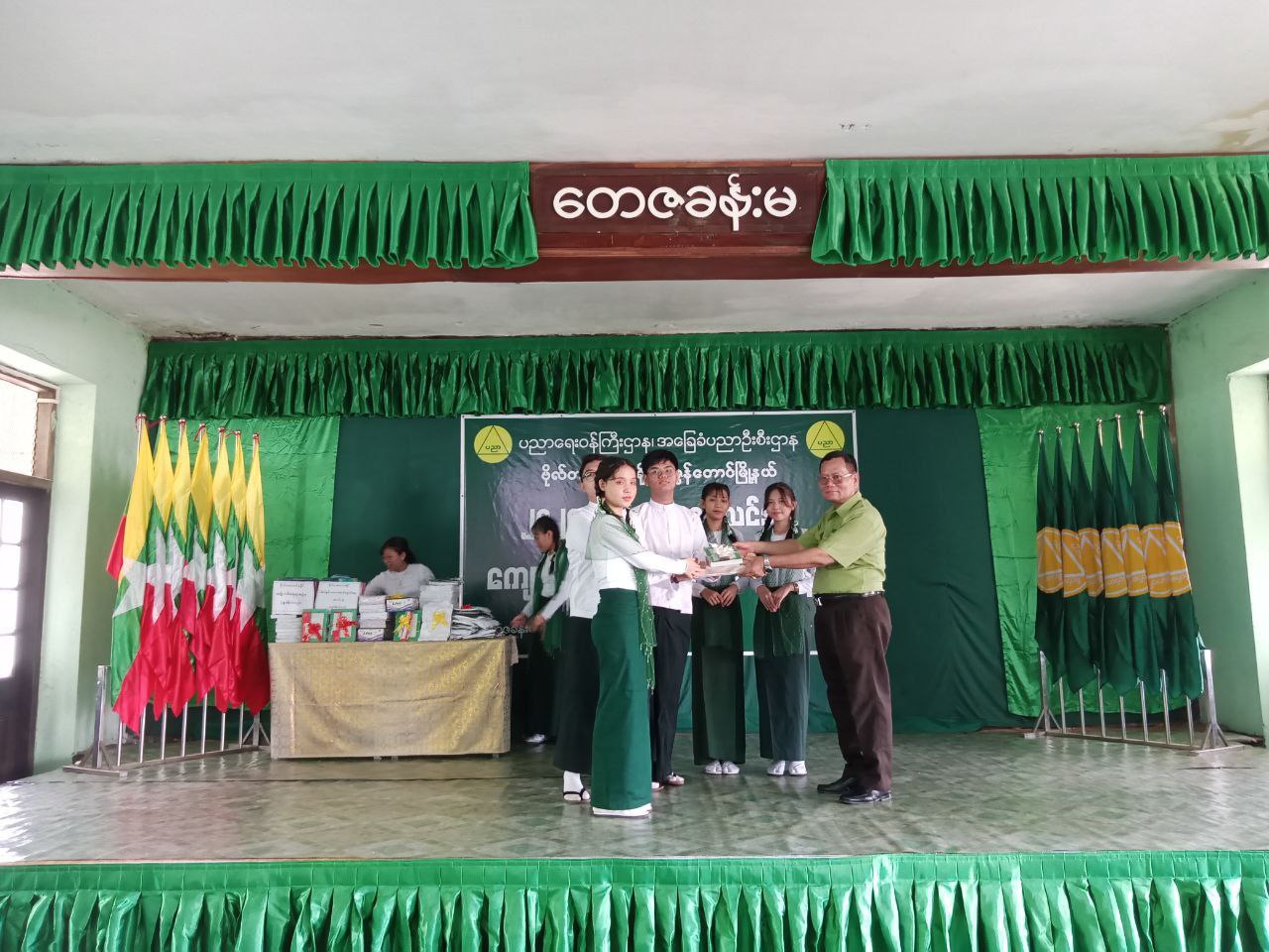 ဆက်လက်ပြီး ဗိုလ်တထောင်ခရိုင်စီမံအုပ်ချုပ်ရေးအဖွဲ့ဥက္ကဋ္ဌ ခရိုင်အုပ်ချုပ်ရေးမှူး ဦးအောင်လွင်မှ အထက်တန်းကျောင်းများအတွက် ကျောင်းသုံးဗလာစာအုပ်နှင့်စာရေးကိရိယာများ၊ ခရိုင်ပညာရေး မှူးဒေါ်ခင်သူဇာစိန်မှ ကျောင်းဝတ်စုံများ၊ ဗိုလ်တထောင်ခရိုင် မိခင်/ကလေးစောင့်ရှောက်ရေးနှင့် အမျိုးသမီးရေးရာအဖွဲ့မှ ဗလာစာအုပ်(၁၀)ဒါဇင်နှင့်ဘောပင်အချာင်း(၅၀)၊ မြို့နယ်စီမံအုပ်ချုပ်ရေး အဖွဲ့ဥက္ကဋ္ဌ မြို့နယ်အုပ်ချုပ်ရေးမှူး ဦးဇော်ဝင်းလှိုင်မှ အလယ်တန်းကျောင်းများအတွက် ကျောင်း ဝတ်စုံများ၊ မြို့နယ်ပညာရေးမှူးမှ မူလတန်းကျောင်းများအတွက် ပုံနှိပ်စာအုပ်များ အသီးသီး ထောက်ပံ့ လှူဒါန်းခဲ့ကြရာ မြို့နယ်အတွင်းရှိ အခြေခံပညာကျောင်းများမှ ကျောင်းသား/ ကျောင်းသူလေးများမှ လက်ခံရယူခဲ့ပြီးနောက် အမှတ်(၁) အခြေခံပညာ အထက်တန်းကျောင်းမှ ကျောင်းသား/ကျောင်းသူ လေးများက "ဇာတိမာန်" သီချင်းဖြင့် သီဆိုဖျော်ဖြေကာ အခမ်းအနားကို အောင်မြင်စွာ ရုပ်သိမ်းခဲ့ကြောင်း သိရသည်။