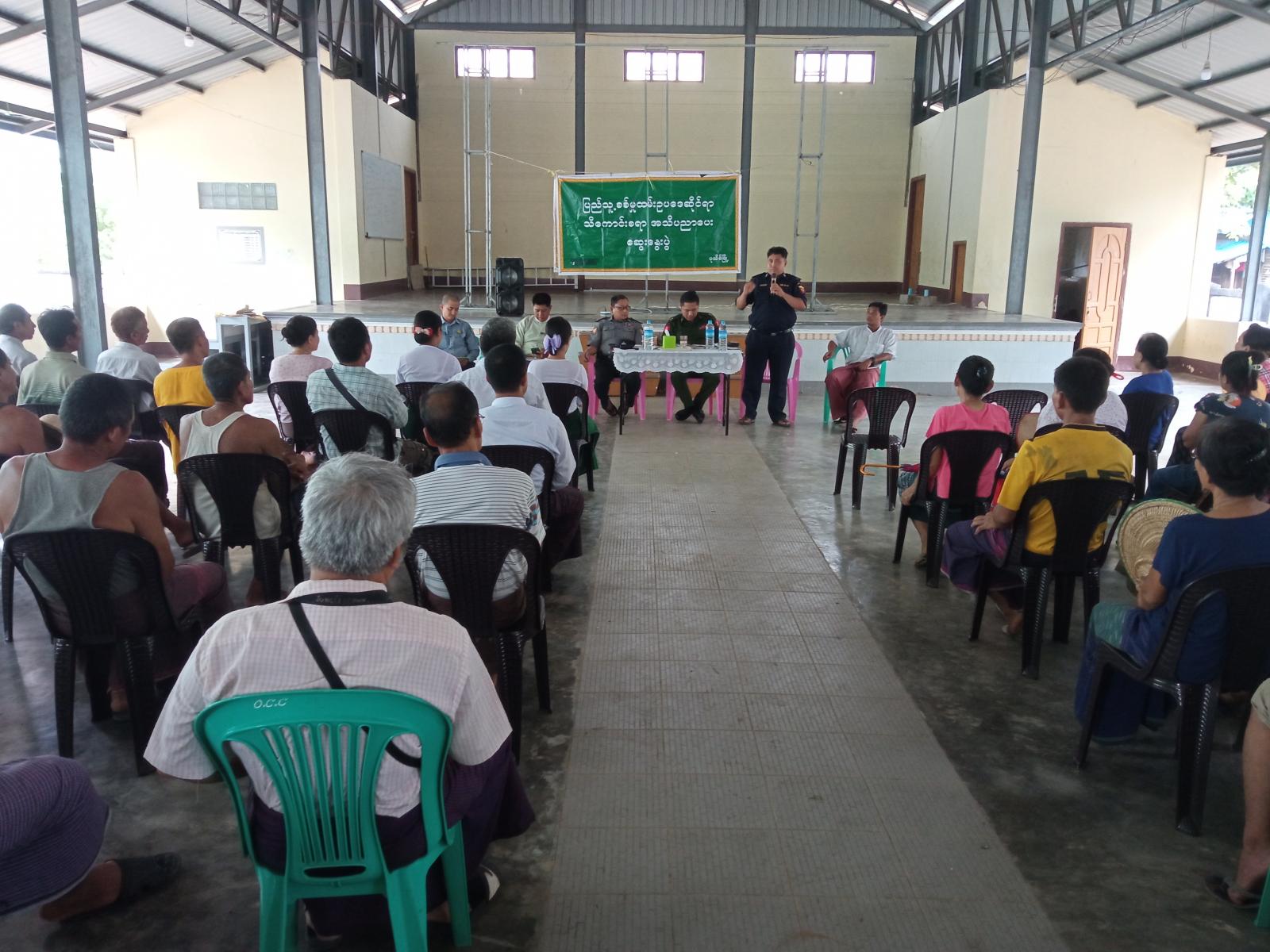 ထို့နောက်လုံခြုံရေး၊ တရားဉပဒေစိုးမိုးရေး၊ ရပ်ရွာအေးချမ်းသာယာရေး၊ ဒေသဖွံ့ဖြိုးရေးတို့အတွက် ဆောင်ရွက်ရမည့်လုပ်ငန်း ဆောင်တာများကိုပြောကြားပြီး ပြည်သူများမှ တင်ပြလာသော ဒေသလိုအပ်ချက်များကို ပြန်လည်ဆွေးနွေးပေးခဲ့ကြကြောင်းသိရသည်။