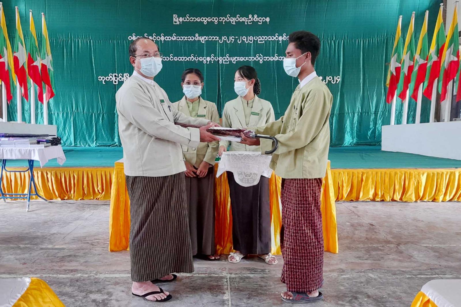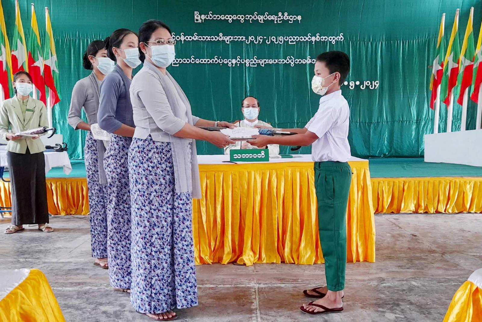 ယင်းနောက် မြို့နယ်အုပ်ချုပ်ရေးမှူးနှင့်တာဝန်ရှိသူများက ဝန်ထမ်းနှင့်ဝန်ထမ်းသားသမီး ကျောင်းသားကျောင်းသူများကို ကျောင်းသုံးပစ္စည်းများနှင့်ပညာသင်ထောက်ပံ့ကြေးငွေများကို အသီးသီးပေးအပ်ခဲ့ကြောင်း သိရသည်။