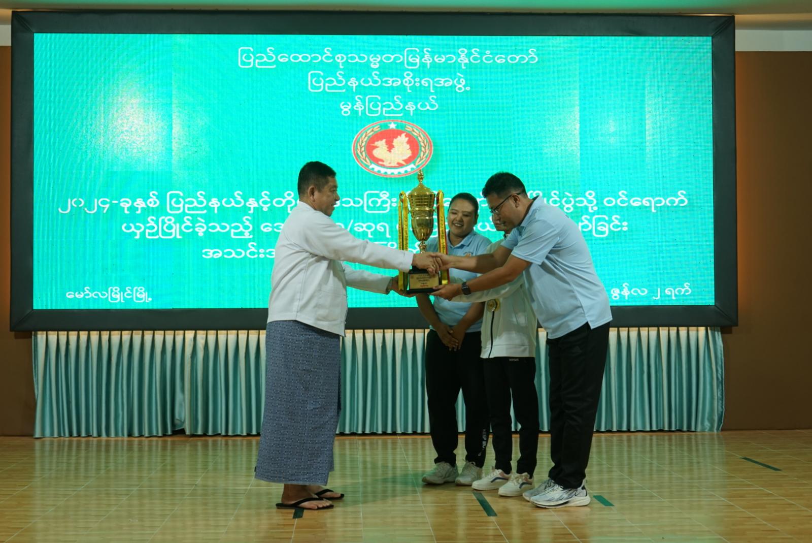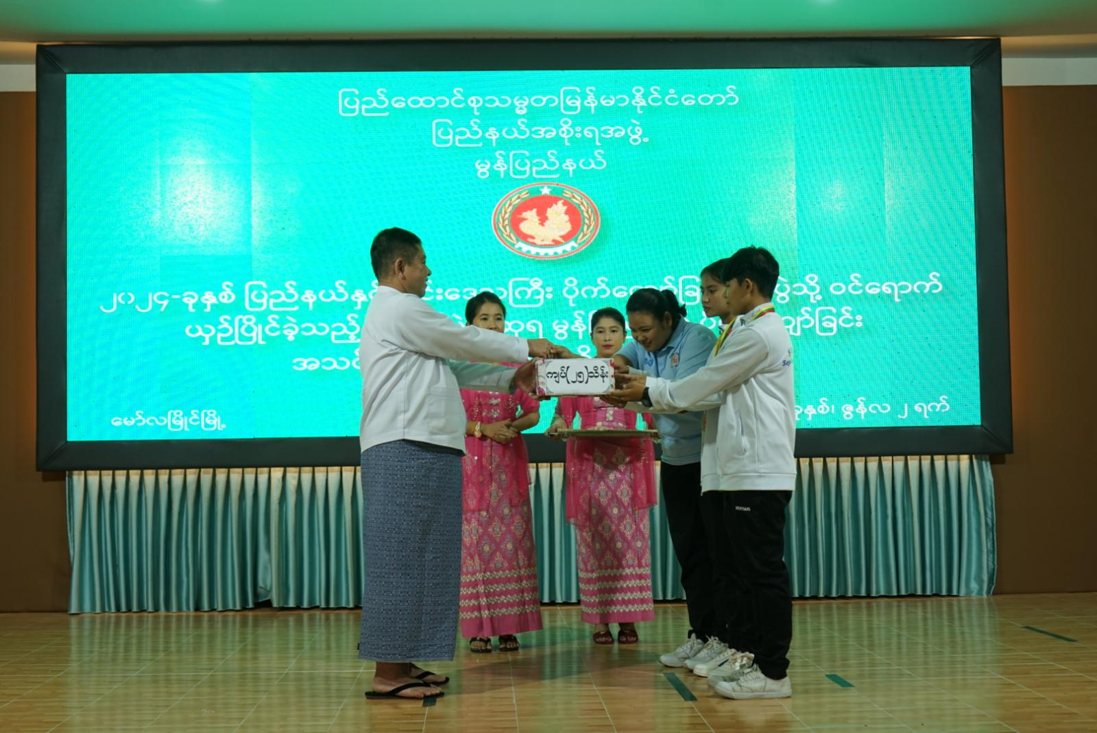 ထို့နောက် မွန်ပြည်နယ်ပိုက်ကျော်ခြင်းအသင်း အောင်ပွဲရ ဆုဖလားအား ပြည်နယ်အစိုးရအဖွဲ့သို့ ပေးအပ်ရာ ပြည်နယ်ဝန်ကြီးချုပ်ကလက်ခံရယူပြီး မွန်ပြည်နယ်အစိုးရအဖွဲ့နှင့် မွန်ပြည်နယ် အားကစားနှင့်ကာယပညာဦးစီးဌာနတို့မှ ဂုဏ်ပြုငွေ စုစုပေါင်းကျပ် (၂၅) သိန်းအား ပြည်နယ်ဝန်ကြီးချုပ် ဦးအောင်ကြည်သိန်းက လည်းကောင်း၊ ရွှေတံဆိပ်ဆုရရှိသော ပိုက်ကျော်ခြင်းအသင်းအား ဂုဏ်ပြုငွေကျပ် (၅ဝ)သိန်းကို မွန်ပြည်နယ်ပိုက်ကျော်ခြင်း ဆပ်ကော်မတီ ဒုတိယဥက္ကဋ္ဌ ဦးတင်မျိုးသွင်ကလည်းကောင်း ပေးအပ်ချီးမြှင့်ခဲ့ရာ အောင်ပွဲရ အမျိုးသမီး ပိုက်ကျော်ခြင်း အားကစားသမားများက လက်ခံရယူကြသည်။
