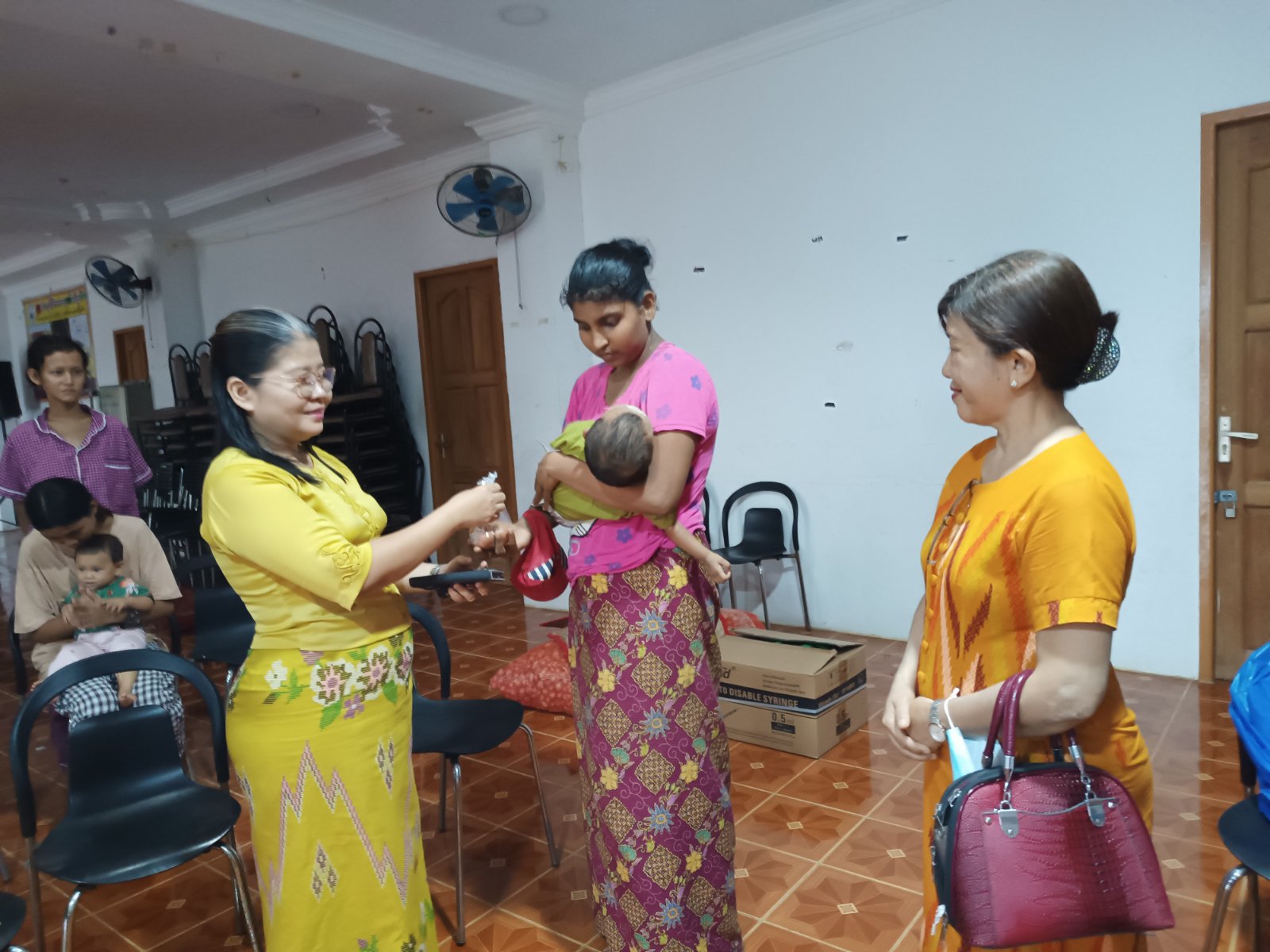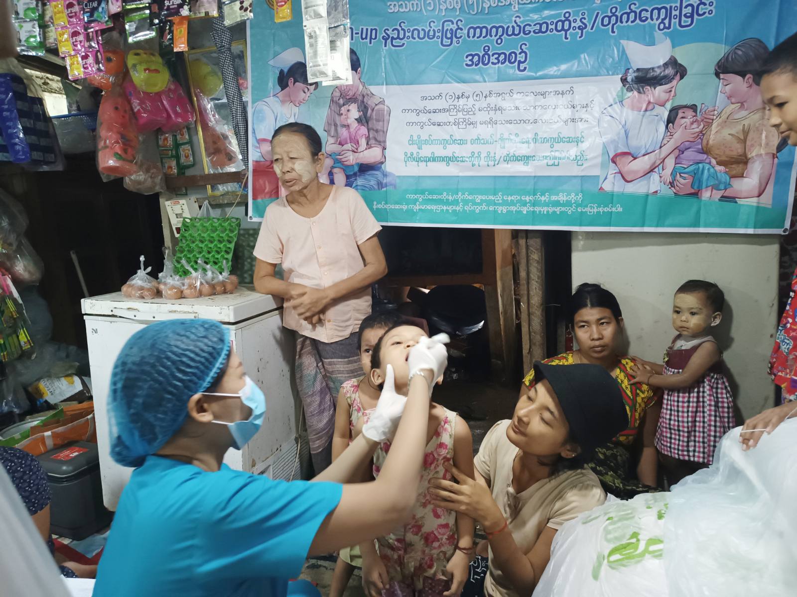 ထိုသို့ဆောင်ရွက်ရာတွင် အသက်(၁)နှစ်မှ (၅)နှစ်အရွယ်ကလေးများအနက် ကာကွယ်ဆေးအကြိမ် ပြည့်မထိုးနှံရသေးသော ကလေးငယ်များနှင့် ကာကွယ်ဆေးတစ်ကြိမ်မျှ မရရှိသေးသော ကလေးငယ်များအား မြို့နယ်ပြည်သူ့ကျန်းမာရေးဦးစီးဌာနမှူး ဒေါက်တာသီသီလတ်နှင့်ဝန်ထမ်းများက ငါးမျိုးစပ်ကာကွယ်ဆေး၊ ဝက်သက်-ဂျိုက်သိုးရောဂါကာကွယ်ဆေးနှင့် ပိုလီယိုရောဂါကာကွယ်ဆေးစသည်တို့ကို တိုက်ကျွေး၊ ထိုးနှံပေးခြင်းများဆောင်ရွက်ခဲ့သည်။