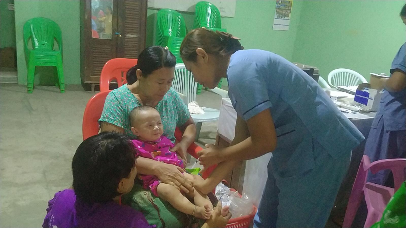 အဆိုပါ ပုံမှန်ကာကွယ်ဆေး ထိုးနှံတိုက်ကျွေးခြင်းကို မြို့နယ်ကျန်းမာ ရေးဦးစီးဌာနမှ တာဝန်ကျ ဆရာမများက မွေးစမှ အသက်(၁)နှစ်ခွဲအောက် ကလေးငယ်များအား ဆုံဆို့နာ၊ ကြက်ညှာ၊ ချောင်းဆိုး၊ မေးခိုင်ရောဂါ၊ အသည်းရောင်အသားဝါဘီရောဂါနှင့် ဦးနှောက်အမြှေးရောင်ရောဂါ၊ ပိုလီယိုရောဂါများကို ကာကွယ်နိုင်ရန် ကာကွယ်ဆေးထိုးနှံခြင်းတိုက်ကျွေးခြင်းတို့ကို ရပ်ကွက်/ ကျေးရွာများအလိုက် ဆောင်ရွက်ပေးလျက်ရှိကြောင်း သိရသည်။