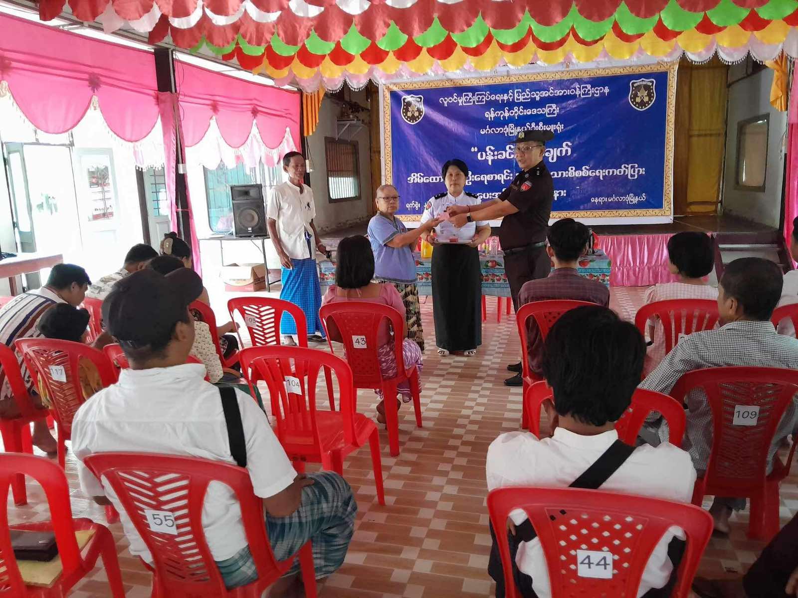 "လူမှုဘဝပြည့်စုံဖို့ နိုင်ငံသားကတ်ကိုင်ကြစို့" ဆောင်ပုဒ်နှင့်အညီ ပန်းခင်းစီမံချက်အဆင့်(၃)ဖြင့် ရန်ကုန်တိုင်းဒေသကြီး မင်္ဂလာဒုံမြို့နယ် လူဝင်မူကြီးကြပ်ရေးနှင့်ပြည်သူအင်အားဝန်ကြီးဌာန မြို့နယ်ဦးစီးမှူး ဦးမြင့်သူအောင်နှင့်ဝန်ထမ်းများ လိုက်ပါလျက် ရွှေနံသာကျေးရွာအုပ်စုရှိ မိဘပြည်သူများအား အိမ်ထောင်စုလူဦးရေစာရင်းနှင့် နိုင်ငံသားစိစစ်ရေးကတ်ပြားများကို ယမန်နေ့ နံနက်ပိုင်းက ကွင်းဆင်းဆောင်ရွက်ခဲ့သည်။