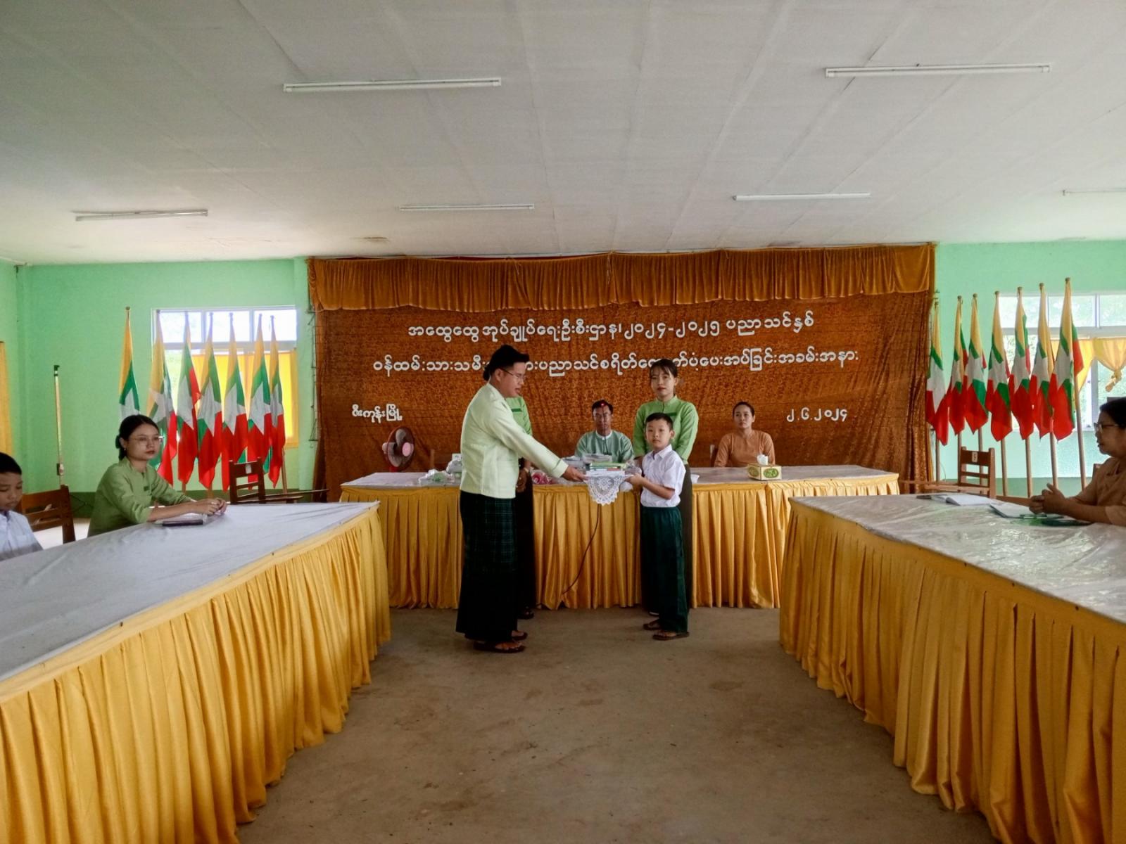 ရှေးဦးစွာ မြို့နယ်အုပ်ချုပ်ရေးမှူး ဦးမျိုးသက်အောင်က အဖွင့်အမှာစကားပြောကြားခဲ့သည်။ ထို့နောက် ၂၀၂၄-၂၀၂၅ ပညာသင်နှစ် အထွေထွေအုပ်ချုပ်ရေးဦးစီးဌာန ဝန်ထမ်းသားသမီးများအား ကျောင်းသုံးဗလာစာအုပ်၊ ခဲတံ၊ ဘောပင်၊ ပေတံ၊ ခဲဖျက်၊ ရေဘူးနှင့် အခြားကျောင်းသုံးပစ္စည်းများအား မြို့နယ်အုပ်ချုပ်ရေးမှူးနှင့် တာဝန်ရှိသူများမှ ကျောင်းသား၊ ကျောင်းသူ(၁၈)ဦးအား ထောက်ပံ့ပေး အပ်ခဲ့ကြောင်း သိရသည်။