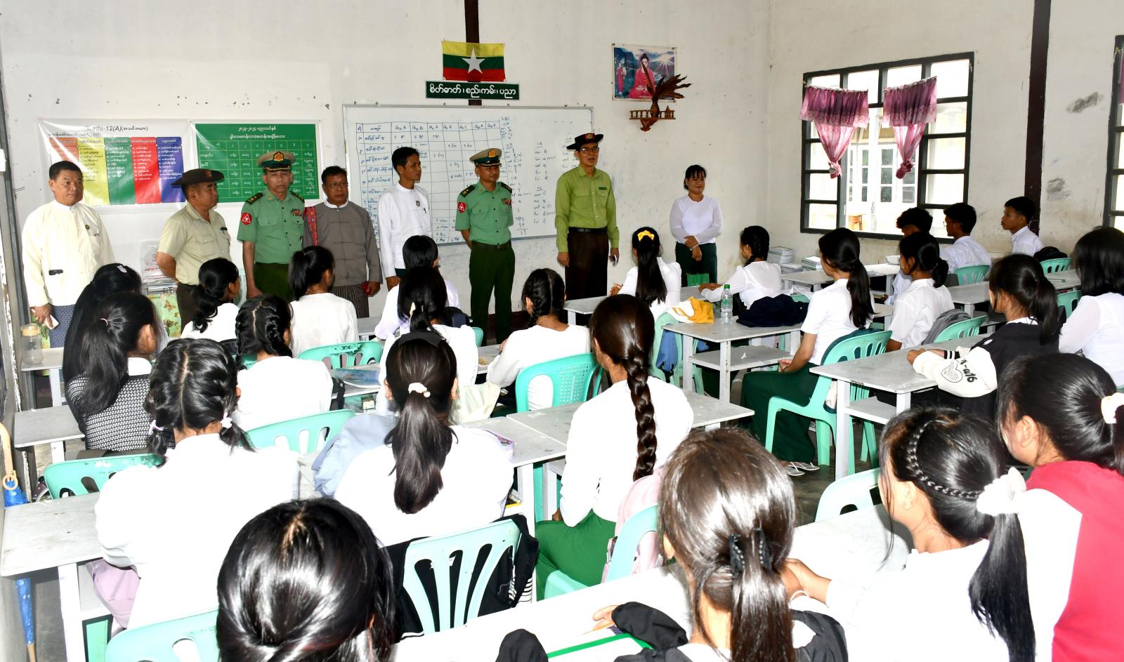 မိုင်းဆတ်မြို့ပေါ်ရှိကျောင်းများ၌ အေးချမ်းပျော်ရွှင်စွာ ပညာသင်ကြားနေမှုအခြေအနေကို အမှတ် (၁၄) စစ်ဆင်ရေးကွပ်ကဲမှုဌာနချုပ်မှ ယာယီနည်းဗျူဟာမှူး ဒုတိယဗိုလ်မှူးကြီး ဝင်းကျော်သန့်၊ ခရိုင်စီမံ အုပ်ချုပ်ရေးအဖွဲ့ဥက္ကဋ္ဌ ဦးညီညီထွေး၊ ခရိုင်ပညာရေးမှူး ဦးအောင်ဇော်၊ မြို့နယ်စီမံအုပ်ချုပ်ရေးအဖွဲ့ဥက္ကဋ္ဌ ဦးအားလွန်၊ မြို့နယ်ပညာရေးမှူး ဦးစိုင်းတင့်ဆန်းနှင့် ဌာနဆိုင်ရာတာဝန်ရှိသူများက လိုက်လံကြည့်ရှုအားပေးခဲ့ကြောင်း သိရသည်။