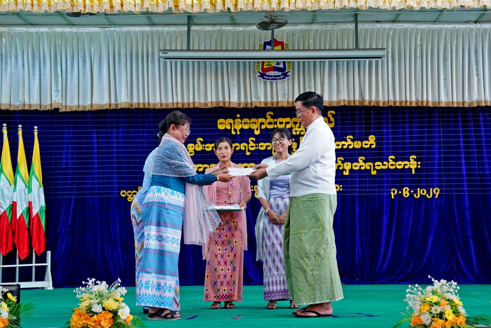 ဦးစွာ တိုင်းဒေသကြီးဝန်ကြီးချုပ် ဦးတင့်လွင်က နိုင်ငံတစ်နိုင်ငံ လူမျိုးတစ်မျိုး ခေတ်မီဖွံ့ဖြိုးတိုးတက်ရေးမှာ ပညာရေးကဏ္ဍမြင့်မားမှုဟာ အဓိကကျတဲ့ ကဏ္ဍတစ်ခုဖြစ်ပြီး၊ မျက်မှောက်ခေတ်ကာလဖြစ်တဲ့ ပညာခေတ်ရဲ့စိန်ခေါ်မှုကို ရင်ဆိုင်နိုင်ပြီး အစဉ်လေ့လာသင်ယူနေတဲ့ လူ့အဖွဲ့အစည်း တစ်ရပ်ကိုဖန်တီးပေးနိုင်သော ပညာရေးစနစ်တစ်ခု ဖြစ်ထွန်းရေးကို အမျိုးသားရေး မူဝါဒတစ်ရပ်အဖြစ် အကောင် အထည်ဖော်ဆောင်ရွက်လျက်ရှိပါကြောင်း၊ ပညာခေတ်ရဲ့ စိန်ခေါ်မှုများကို ထိရောက်စွာ ရင်ဆိုင်နိုင်ပြီး နိုင်ငံဖွံ့ဖြိုးတိုးတက်မှုအတွက် နိုင်ငံတကာနှင့် ရင်ဘောင်တန်းနိုင်သော အရည်အသွေးပြည့်ဝသည့် လူ့စွမ်းအားအရင်းအမြစ်များကို ပြုစု ပျိုးထောင်ပေးရမှာ ဖြစ်ပါကြောင်း၊ နိုင်ငံတော်ရဲ့လူ့စွမ်းအားအရင်းအမြစ်ဖြစ်တဲ့ လူငယ်၊ လူလတ်နှင့် စီးပွားရေးလုပ်ငန်းရှင်များကို မြန်မာနိုင်ငံအတွင်းသာမက ကမ္ဘာတစ်ဝှမ်းမှာ ပြောင်းလဲဖြစ်ပေါ်နေတဲ့ အခွင့်အလမ်းများကို ခေတ်နှင့်အညီရှာဖွေနိုင်ရန်၊ ချိတ်ဆက်ဆောင်ရွက်နိုင်ရန်တို့အတွက် အင်္ဂလိပ်ဘာသာစကား ကျွမ်းကျင်မှုရှိရန် လိုအပ်ပါကြောင်း၊ ဒါ့ကြောင့် ဒီနေ့ဖွင့်လှစ်တဲ့ ကျွမ်းကျင်မှုအင်္ဂလိပ်ဘာသာစကား လက်မှတ်ရ သင်တန်းဟာ ရေနံချောင်း မြို့နယ်ဝန်းကျင်မှာရှိသော ကျောင်းသား၊ ကျောင်းသူများ၊ စီးပွားရေးလုပ်ငန်း ဆောင်ရွက်နေသူများနှင့် နိုင်ငံ့ဝန်ထမ်းအားလုံးအတွက်အထူး လိုအပ်တဲ့သင်တန်းတစ်ခုပဲ ဖြစ်ပါကြောင်း၊ ကမ္ဘာသုံးဘာသာစကားဖြစ်တဲ့ အင်္ဂလိပ်ဘာသာစကား ကျွမ်းကျင်မှုသင်တန်းကို တက်ရောက် ခြင်းဖြင့် ရေနံချောင်းတက္ကသိုလ် ကျောင်းသား၊ ကျောင်းသူများအတွက် အင်္ဂလိပ်စာ အရည်အချင်းတိုးတက်လာမှာဖြစ်ပြီး၊ နိုင်ငံ့ဝန်ထမ်းများအတွက် မိမိတို့ဌာနအသီးသီးရဲ့ လုပ်ဆောင်မှုစွမ်းအား မြင့်တက်လာမှာဖြစ်ပါကြောင်း၊ တက္ကသိုလ်အနေနဲ့လည်း အင်္ဂလိပ်ဘာသာစကား ကျွမ်းကျင်မှုသင်တန်းကို အခြေခံအဆင့်မှသည် အဆင့်မြင့်တက္ကသိုလ်သင်တန်းများအထိ စဉ်ဆက်မပြတ် တိုးချဲ့ဖွင့်လှစ်သွားရန် တိုက်တွန်းလိုပါကြောင်း၊ မြန်မာကို အာဆီယံအသိုက်အဝန်းသာမက ကမ္ဘာတစ်ဝှမ်းနဲ့ပါ ထိထိရောက် ရောက် အရေးပါတဲ့ အင်္ဂလိပ်ဘာသာစကားကို ကျွမ်းကျွမ်းကျင်ကျင် တတ်မြောက်ခြင်းဖြင့် ရေနံချောင်းမြို့နယ်ဝန်းကျင်မှာရှိသော ပညာရေးဆိုင်ရာ၊ စီးပွားရေးဆိုင်ရာ၊ လူမှုရေးဆိုင်ရာ ကဏ္ဍအသီးသီး ဖွံ့ဖြိုးတိုးတက်လာမှာပဲ ဖြစ်ပါကြောင်း စသည်ဖြင့် ပြောကြားသည်။