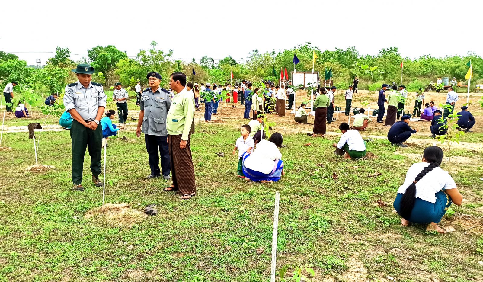 ရှေးဦးစွာ မြို့နယ်စီမံအုပ်ချုပ်ရေးအဖွဲ့ဥက္ကဌ ဦးမျိုးတင့်ထူးနှင့် အဖွဲ့ဝင်များ၊ တာဝန်ရှိသူများက ပျိုးပင်များပေးအပ်၍ မြို့နယ်အဆင့်ဌာနဆိုင်ရာများ၊ မြို့နယ်အမျိုးသမီးရေးရာအဖွဲ့ဝင်များနှင့် မိခင်နှင့် ကလေးစောင့်ရှောက်ရေးအသင်းဝင်များ၊ ဒေသခံပြည်သူများနှင့်အတူ သစ်ပင်များစိုက်ပျိုးပေးပြီး လှည့်လည်ကြည့်ရှုအားပေးကြသည်။