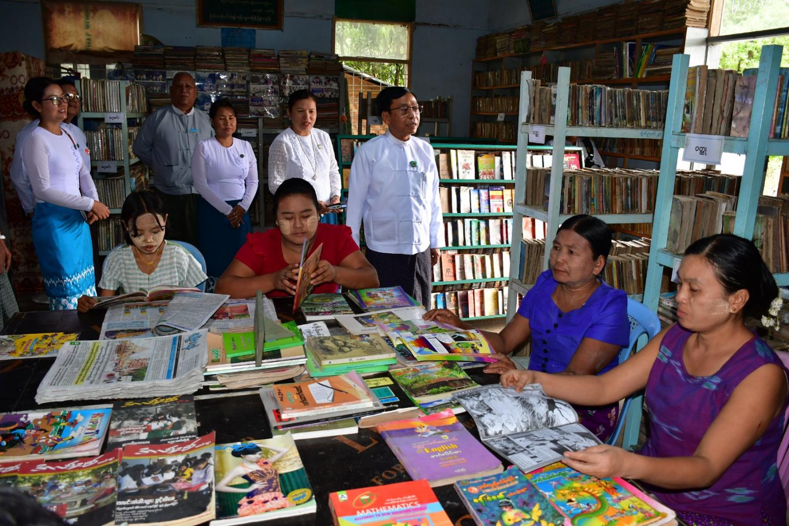 ဆက်လက်၍ နေပြည်တော်ကောင်စီဥက္ကဋ္ဌ ဦးသန်းထွန်းဦးသည် တပ်ကုန်းမြို့၊ အနော်ရထာရပ်ကွက်ရှိ အားမာန်သစ်စာကြည့်တိုက်သို့ သွားရောက်၍ စာကြည့်တိုက်အတွင်း ပြည်သူများ စာပေဖတ်ရှုလေ့လာနေမှုကို ကြည့်ရှုအားပေးပြီး စာကြည့်တိုက်အတွက် ငွေပဒေသာပင်နှင့် စာအုပ်များကို ပေးအပ်လှူဒါန်းသည်။