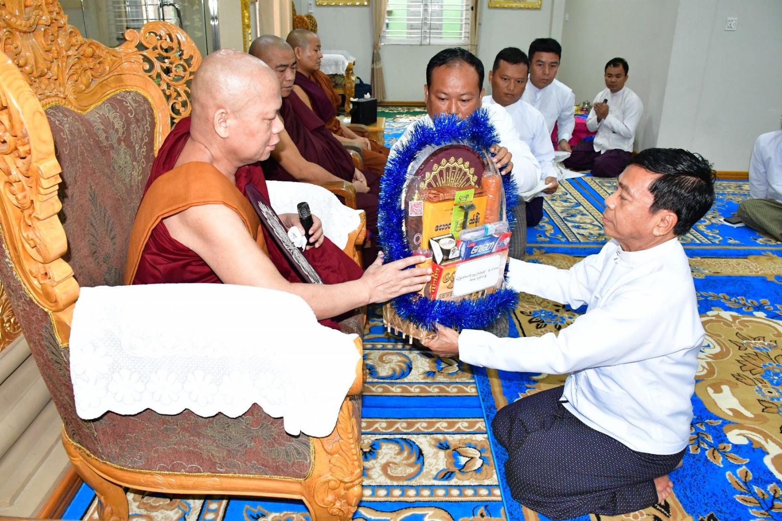 နေပြည်တော်ကောင်စီဥက္ကဋ္ဌ ဦးသန်းထွန်းဦးသည် နေပြည်တော်ကောင်စီဝင်များ၊ ဌာနဆိုင်ရာ တာဝန်ရှိသူများလိုက်ပါလျက် ယနေ့နံနက်ပိုင်းတွင် တပ်ကုန်းမြို့နယ်၊ မြို့ဦးပရိယတ္တိစာသင်တိုက် ပဓာနနာယကဆရာတော် အဂ္ဂမဟာဂန္ထဝါစကပဏ္ဍိတ ဘဒ္ဒန္တပဏ္ဍဝ မဟာထေရ်မြတ်အား သွားရောက်ဖူးမြော်ကြည်ညို၍ ဆွမ်းဆန်တော်၊ ဆီ၊ နဝကမ္မအလှူငွေနှင့် လှူဖွယ်ပစ္စည်းများ ဆက်ကပ်လှူဒါန်းသည်။
