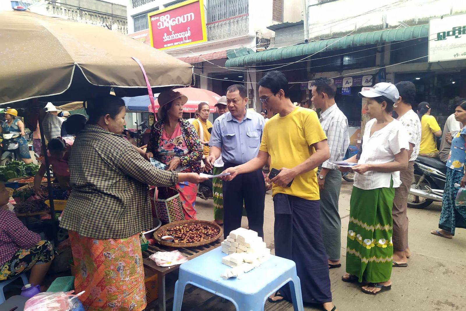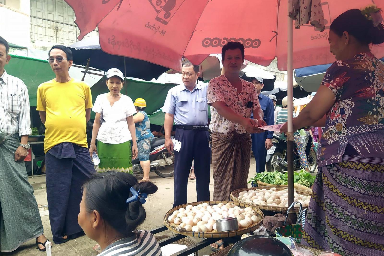 မကွေးတိုင်းဒေသကြီး၊ အောင်လံခရိုင်၊ အောင်လံမြို့၌ သဘာဝပတ်ဝန်းကျင် ထိန်းသိမ်းရေးနှင့် ပြည်သူများ ပလတ်စတစ်အိတ်လျှော့ချသုံးစွဲ စေရန်ရည်ရွယ်၍ မြို့နယ်စည်ပင်သာယာ မြို့မဈေး အတွင်း ဈေးရောင်းဈေးဝယ်ပြည်သူများအား ပလတ်စတစ်အိတ်အစား ငှက်ပျောဖက်၊ အင်ဖက်၊ စက္ကူအိတ်များ အသုံးပြုနိုင်ရေး အသိပညာပေး လက်ကမ်းစာစောင်များကို ယမန်နေ့ နံနက် ၈ နာရီခွဲက ဆောင်ရွက်ခဲ့သည်။
