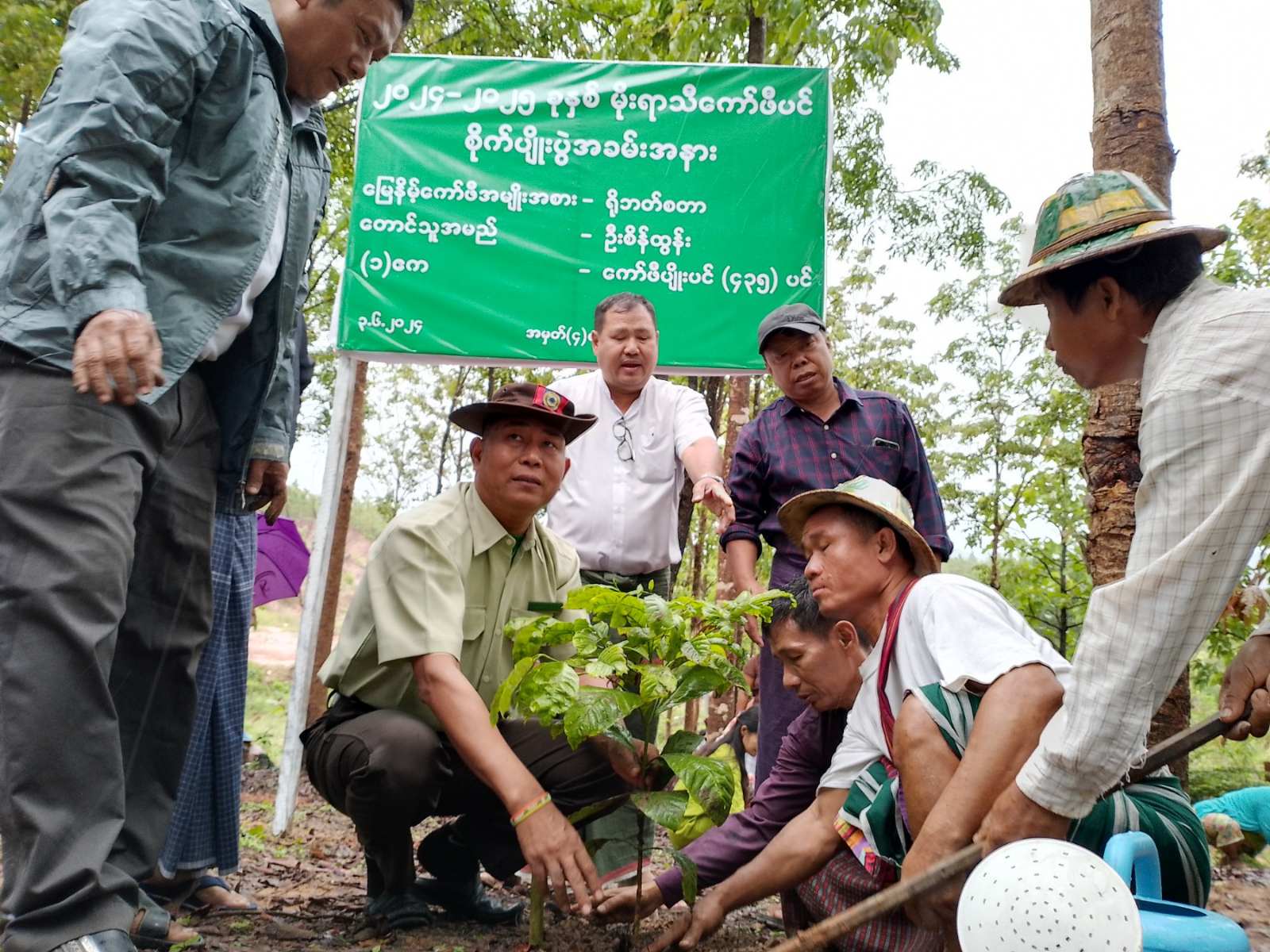 ကရင်ပြည်နယ်၊ မြဝတီမြို့၌ ၂၀၂၄-၂၀၂၅ ခုနှစ် မိုးရာသီကော်ဖီပင် စိုက်ပျိုးပွဲအခမ်းအနားကို ဇွန် ၃ ရက်က အမှတ် (၄) ရပ်ကွက်ရှိ တောင်သူဦးစိန်ထွန်း၏ စိုက်ပျိုးရေးခြံ၌ကျင်းပခဲ့ရာ မြို့နယ်စီမံအုပ်ချုပ်ရေးအဖွဲ့ဥက္ကဋ္ဌ မြို့နယ်အုပ်ချုပ်ရေးမှူး ဦးသက်လွင်နှင့် မြို့နယ်စီမံအဖွဲ့ဝင်များ၊ မြို့နယ်အဆင့်ဌာနဆိုင်ရာတာဝန်ရှိသူများနှင့် စိုက်ပျိုးရေးတောင်သူများ တက်ရောက်ကြသည်။