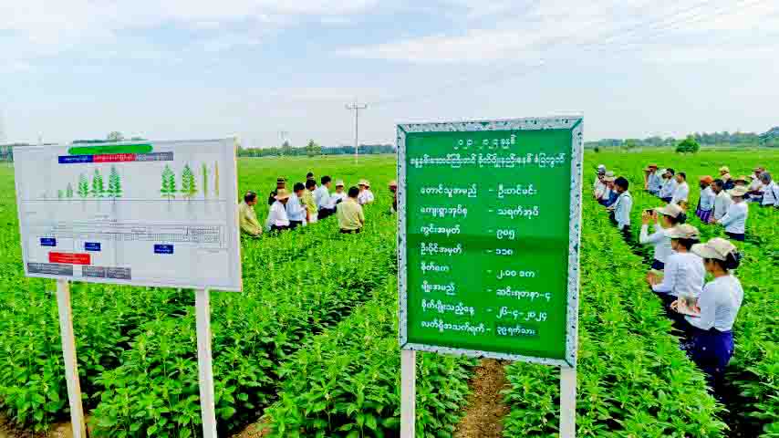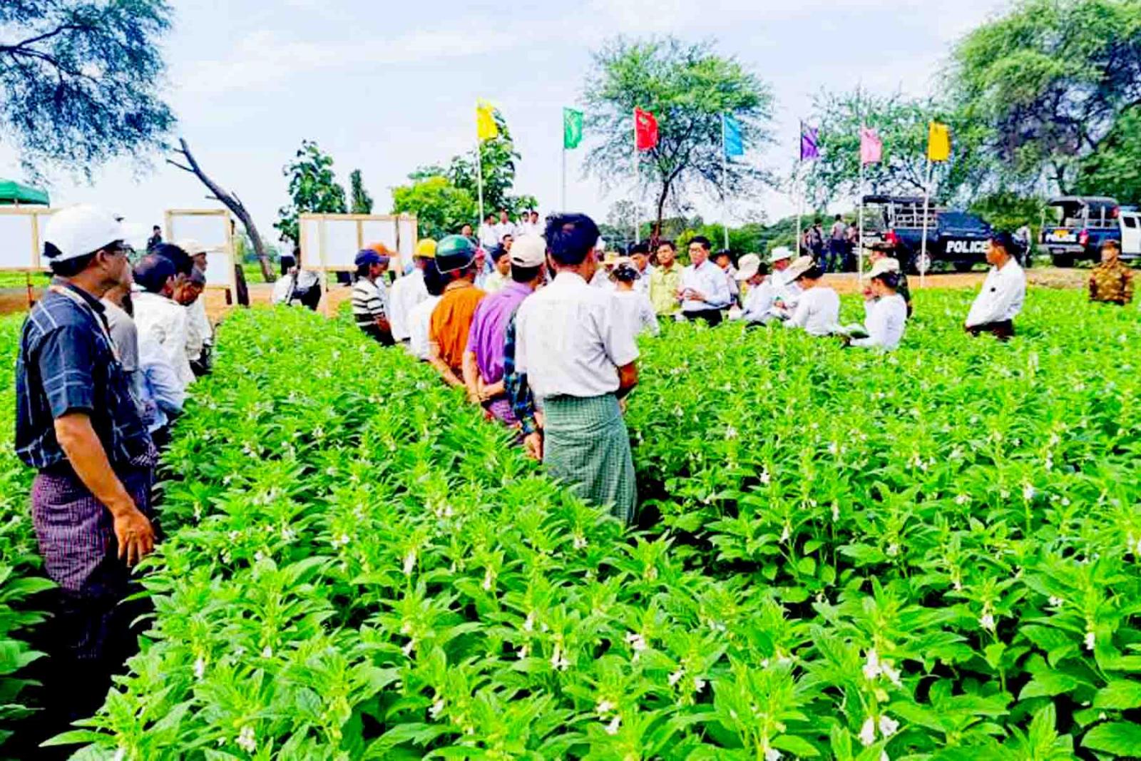ဆက်လက်၍ ဝန်ကြီးချုပ်နှင့် တာဝန်ရှိသူများအဖွဲ့သည် မြို့နယ်စိုက်ပျိုးရေးဦးစီးဌာန (မျိုးသန့်ခြံ) သို့ ရောက်ရှိပြီး မျိုးသန့်ခြံ စိုက်ပျိုးလယ်မြေတွင် နွေနှမ်း(FS - RS) ဆင်းရတနာ (၄) မျိုးစေ့ထုတ်စိုက်ခင်း (၁) ဧက စိုက်ပျိုးဆောင်ရွက်ထားရှိမှုအား ကြည့်ရှုစစ်ဆေး၍ မျိုးသန့်ခြံ(တာဝန်ခံ)နှင့် ဝန်ထမ်းများ ၊ ဒေသခံတောင်သူများကို တွေ့ဆုံကာ ဆီထွက်သီးနှံ နှမ်းစိုက်ပျိုးရာ၌ တစ်ဧက ပန်းတိုင်အထွက်နှုန်းများ ရရှိရေးအတွက် မျိုးကောင်းမျိုးသန့်များ ရွေးချယ် စိုက်ပျိုးရန် ၊ စိုက်နည်းစနစ်များ မှန်ကန်အောင် စိုက်ပျိုးကြရန်နှင့် သီးနှံလျာထားဧကများ ပြည့်မီအောင် ကြိုးပမ်းစိုက်ပျိုးကြရန် လမ်းညွှန်မှာကြားပြီး ဒေသခံတောင်သူများ၏ တင်ပြဆွေးနွေးမှုများအပေါ် လိုအပ်သည်များကို ပေါင်းစပ်ညှိနှိုင်းဖြည့်ဆည်းဆောင်ရွက်ပေးခဲ့ကြောင်း သိရသည်။