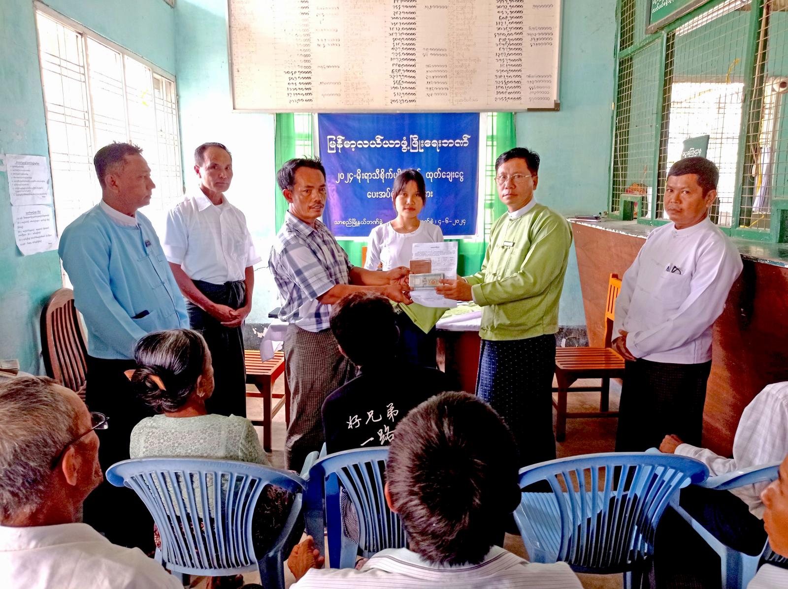 ၂၀၂၄ မိုးရာသီ စိုက်ပျိုးစရိတ်ထုတ်ချေးငွေ ပေးအပ်ပွဲ အခမ်းအနားတွင် ရှေးဦးစွာ မြို့နယ်ချေးငွေအကြံပေးအဖွဲ့ဥက္ကဋ္ဌ မြို့နယ်အုပ်ချုပ်ရေးမှူး ဦးမျိုးသက်ကျော်က အမှာစကား ပြောကြားပြီး မြို့နယ်ဘဏ်ခွဲမန်နေဂျာ ဦးတင်မင်းထွန်းက မြို့နယ်အတွင်း ချေးငွေကြွေးကျန်များ ပြေကြေစွာ ကောက်ခံရရှိရေးနှင့် ပြေကြေသည့် တောင်သူများအား ချေးငွေသစ်များ ပြန်လည်ထုတ်ချေးပေးခြင်း ကိစ္စရပ်များနှင့် စည်းမျဉ်းစည်းကမ်းများ၊ အတိုးနှုန်းများ၊ ငွေချေးတောင်သူများ သီးနှံအာမခံထားရှိနိုင်ရေးနှင့် ဘဏ်လုပ်ငန်းဆိုင်ရာများကို အသေးစိတ် ရှင်းလင်းဆွေးနွေးသည်။ ဆက်လက်၍ ခရိုင်အာမခံလုပ်ငန်းတာဝန်ခံ ဦးဌေးလွင်က သီးနှံအာမခံအကြောင်းကို ရှင်းလင်းဆွေးနွေးပြီး တောင်သူများက အာမခံလုပ်ငန်းနှင့် ပတ်သက်၍ သိရှိလိုသည်များ မေးမြန်းဆွေးနွေးရာ ခရိုင်တာဝန်ခံက ပြန်လည်ရှင်းလင်းဆွေးနွေးပေးခဲ့ကြောင်း သိရသည်။ ထို့နောက် သမင်ဇာကုန်းကျေးရွာမှ တောင်သူ ၆၆ ဦးတို့အား စပါးတစ်ဧကလျှင် ငွေကျပ် ၁၅၀၀၀၀ နှုန်း၊ အခြားယာသီးနှံတစ်ဧကလျှင် ငွေကျပ် (၁၀၀၀၀၀) နှုန်း တို့ဖြင့် စပါး ၁၆၃ ဧကနှင့် နှမ်း ၁၅၀ ဧကတို့အတွက် စိုက်ပျိုးစရိတ် ချေးငွေကျပ် ၃၉၄၅၀၀၀၀ ကို ထုတ်ချေးခဲ့ကြောင်း သိရသည်။ သာစည်မြို့နယ်တွင် ၂၀၂၄-၂၀၂၅ ခုနှစ် ဘဏ္ဍာရေးနှစ်၌ စိုက်ပျိုးစရိတ်ချေးငွေ ထုတ်ချေးရန် လျာထားစပါးဧက ၁၈၃၅၆ နှင့် အခြားသီးနှံဧက ၁၄၄၆၆ တို့အတွက် ချေးငွေ ကျပ်သိန်းပေါင်း ၄၂၀၀၀ လျာထားကြောင်း သိရသည်။