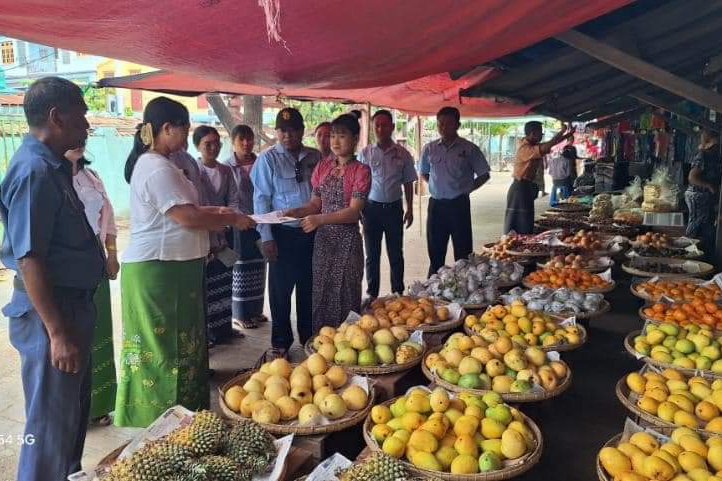 ထို့နောက် ဌာနဆိုင်ရာတာဝန်ရှိသူများ ပူးပေါင်းအဖွဲ့က ဈေးရောင်းဈေးဝယ်ပြည်သူများကို သဘာဝပတ်ဝန်းကျင် ကာကွယ်ထိန်းသိမ်းရေးဆိုင်ရာ အသိပညာပေးလက်ကမ်းစာစောင်များကို ဖြန့်ဝေပေးပြီး ပလတ်စတစ်ပစ္စည်းများ လျှော့ချနိုင်ရေးအတွက် ပလတ်စတစ်ပစ္စည်းအစားထိုးအသုံးပြုနိုင်ရန် ငှက်ပျောဖက်၊ အင်ဖက်၊ ကြာဖက်၊ စက္ကူတို့ကို အခမဲ့ဖြန့်ဝေပေးခဲ့ကြပြီး ဈေးဝန်းကျင်သန့်ရှင်းရေး၊ ဈေးအတွင်းရှိ အများသုံးသန့်စင်ခန်းများ သန့်ရှင်းသပ်ရပ်စေရေးနှင့် ရေလုံလောက်မှု ရှိ/ မရှိ ကြည့်ရှုစစ်ဆေးဆောင်ရွက်ပေးခဲ့ကြောင်း သိရသည်။