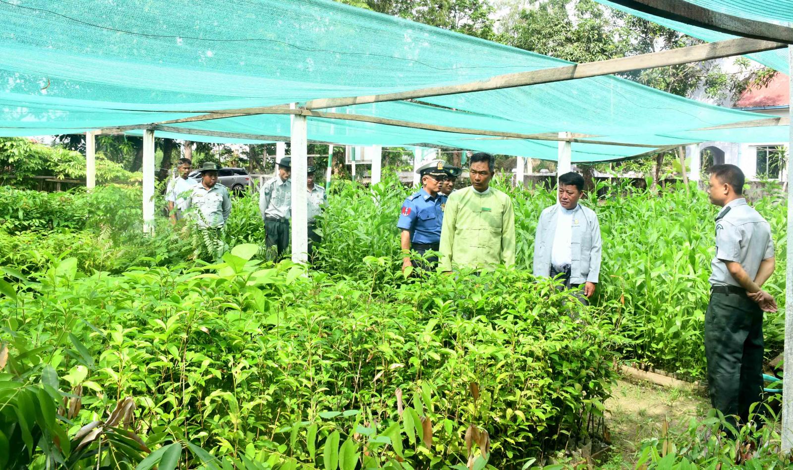 ထိုသို့ ကွင်းဆင်းစစ်ဆေးရာတွင် ခရိုင်စီမံအုပ်ချုပ်ရေးအဖွဲ့ဥက္ကဋ္ဌ ဦးနေမင်းသူနှင့်အဖွဲ့ဝင်များ၊ တာဝန်ရှိသူများသည် မြို့နယ်သစ်တောဦးစီးဌာနရုံးသို့ သွားရောက်ပြီး ၎င်းတို့ရုံးခြံဝန်း၌ ပျိုးထောင်ထားရှိသည့် ၂၀၂၄ ခုနှစ်၊ မျိုးရာသီ၌ လူထုဖြန့်ပျိုးပင်များ စနစ်တကျပျိုးထောင်ထားရှိမှုနှင့် အပင်များရှင်သန်ကြီးထွားနေမှုတို့အား သွားရောက်ကြည့်ရှုစစ်ဆေးရာ ခရိုင်သစ်တောဦးစီးမှူးက ရှင်းလင်းဖြေကြားပြီး ခရိုင်စီမံအုပ်ချုပ်ရေးအဖွဲ့ဥက္ကဋ္ဌမှ လိုအပ်သည်များကို လမ်းညွှန်မှာကြားခဲ့သည်။