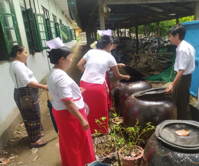 ထိုသို့ ဆောင်ရွက်ရာတွင် မြို့နယ်စီမံအုပ်ချုပ်ရေးအဖွဲ့၏ လမ်းညွှန်မှုဖြင့် ပြည်သူ့ကျန်းမာရေးဦးစီးဌာနနှင့် အခြေခံပညာဉီးစီးဌာနက တာဝန်ရှိသူများ ဉီးဆောင်၍အသင်းအဖွဲ့များ၊ ရပ်ကွက်၊ ကျေးရွာ တာဝန်ရှိသူများ၊ ဆရာ၊ ဆရာမများက အခြေခံပညာကျောင်းများတွင် မိုးကြိုကာလ သွေးလွန်တုပ်ကွေးရောဂါ ကြိုတင်ကာကွယ်ရေးအတွက် ခြင်များ အလွယ် တကူ ပေါက်ပွားနိုင်သည့် ရေတွင်း၊ ရေကန်များ၊ ဘုရားပန်းအိုးများ၊ ရေစည်၊ ရေပုံးများ၊ ရေလောင်းအိမ်သာများတွင် ပိုးလောက်လန်းများ ပေါက်ပွားမှု မရှိစေရေးအတွက် အဘိတ်ဆေးခတ်ခြင်း၊ ဖုံး၊သွန်၊ လဲ၊ စစ်ခြင်းလုပ်ငန်းနှင့် ပညာပေးလုပ်ငန်းများ၊ တာယာခွံများ၊ ရေဗူးများတွင် ပိုးလောက်လန်းများ ပေါက်ပွားမှုမရှိစေရေးအတွက် အဘိတ်ဆေး ခတ်ခြင်း၊ ဖုံး၊ သွန်၊ လဲ၊ စစ်ခြင်းလုပ်ငန်းများနှင့် ပညာပေးလုပ်ငန်းများကို ဆောင်ရွက်ခဲ့ခြင်း ဖြစ်ကြောင်းသိရသည်။ သွေးလွန်တုပ်ကွေးရောဂါ ကြိုတင်ကာကွယ်ရေး လုပ်ငန်းများကို ကျန်ရှိသည့် အခြေခံပညာကျောင်းများနှင့် ရပ်ကွက်၊ ကျေးရွာများတွင်လည်း ဆက်လက်ဆောင်ရွက်သွားမည်ဖြစ်ကြောင်း သိရသည်။