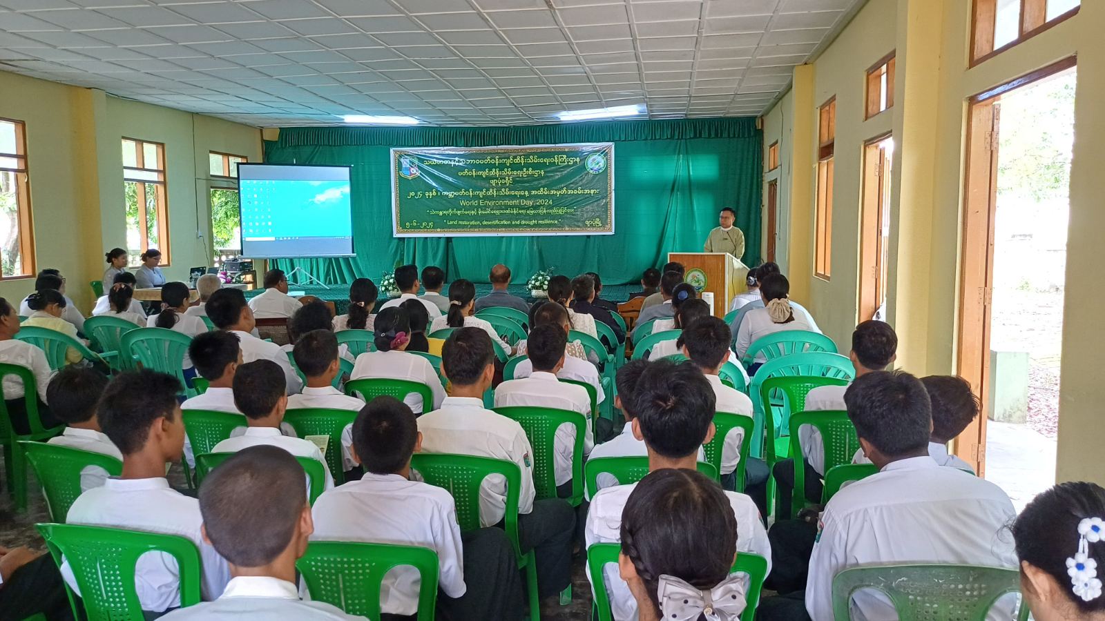 ထို့နောက် ၂၀၂၄ ခုနှစ် ကမ္ဘာ့ပတ်ဝန်းကျင်ထိန်းသိမ်းရေးနေ့ အထိမ်းအမှတ်အဖြစ် "သဲကန္တာရတိုက်ဖျက်ရေးနှင့် မိုးခေါင်ရေရှားဒဏ်ခံနိုင်ရေး မြေယာပြန်လည်ပြုပြင်ပေ"ဆောင်ပုဒ်နှင့်အညီ ပတ်ဝန်းကျင် ထိန်းသိမ်းရေးဆိုင်ရာ အသိပညာပေး Video Clip အား projector ဖြင့် ပြသပြီး ပတ်ဝန်းကျင်ထိန်းသိမ်းရေးဆိုင်ရာ အသိပညာပေး လက်ကမ်းစာစောင်ကို ဖြန့်ဝေပေးခဲ့ကြောင်း သိရှိရသည်။