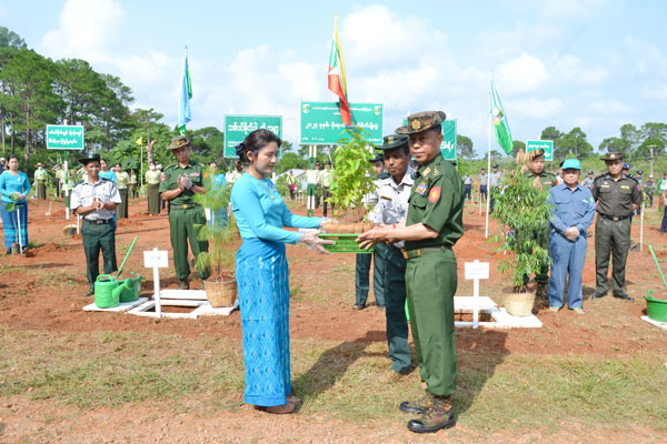 အဆိုပါ စုပေါင်းသစ်ပင်စိုက်ပျိုးပွဲတွင် နယ်မြေခံတပ်နယ်မှ စစ်ဗျူဟာမှူး ဗိုလ်မှူးကြီးဇော်မင်းထက်၊ ခရိုင်စီမံအုပ်ချုပ်ရေးအဖွဲ့မှ ဒုတိယဗိုလ်မှူးကြီး ထွန်းလွင်အောင်၊ မြို့နယ်စီမံအုပ်ချုပ်ရေးအဖွဲ့ အဖွဲ့ဝင်(၁) ဗိုလ်မှူးနေလင်းနှင့် တာဝန်ရှိသူများက ခရိုင်နှင့် မြို့နယ်တို့မှ ဌာနဆိုင်ရာ အကြီးအကဲများနှင့် ဝန်ထမ်းများ၊ လူမှုရေးအသင်းအဖွဲ့များ၊ မြို့နယ်စစ်မှုထမ်းဟောင်းအဖွဲ့၊ မြို့နယ်အမျိုးသမီးရေးရာ၊ မြို့နယ်မိခင်နှင့်ကလေးစောင့်ရှောက်ရေးအသင်း၊ ဒေသခံတိုင်းရင်းသားယဉ်ကျေးမှုအဖွဲ့များ၊ ပြည်သူများအား သစ်ပင်ပျိုးပင်များကို ပေးအပ်ပြီး စုပေါင်းသစ်ပင်စိုက်ပျိုးပွဲကို ကျင်းပခဲ့ကြသည်။