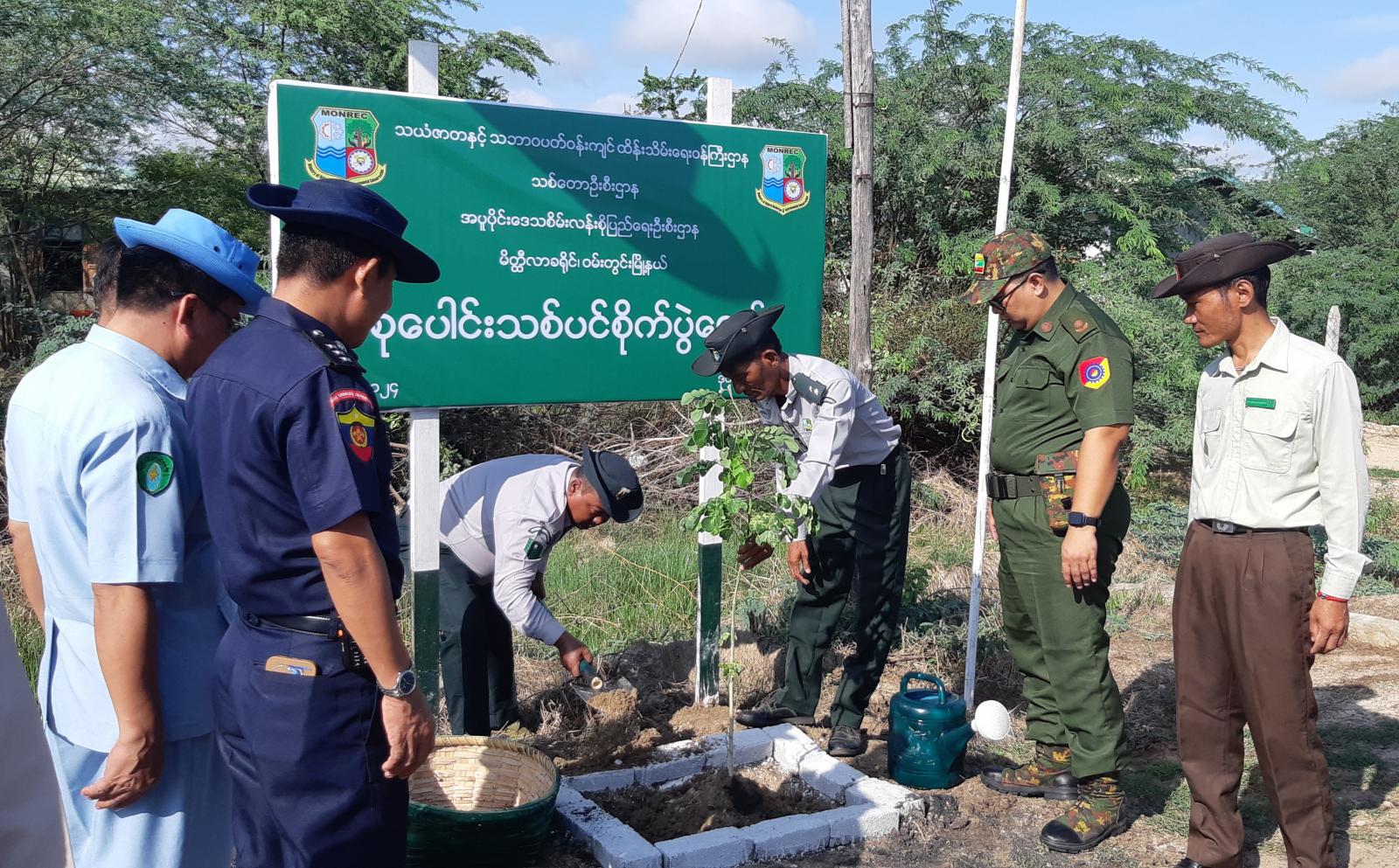 အခမ်းအနားတွင် မြို့နယ်စီမံအုပ်ချုပ်ရေးအဖွဲ့ခေတ္တဥက္ကဋ္ဌ ဗိုလ်မှူး ဝေဟန်ကျော်၊ အဖွဲ့ဝင် (၂) ဦးမြဟန်၊ ခေတ္တအုပ်ချုပ်ရေးမှူး ဦးဟာမန်၊ မြို့နယ်စည်ပင်သာယာရေးအဖွဲ့အမှု့ဆောင်အရာရှိ ဦးတင်မြင့်၊ အပူပိုင်းဒေသ စိမ်းလန်းစိုပြေရေးဦးစီးဌာန၊ ဦးစီးအရာရှိ ဦးဇော်ဝင်းမြင့်၊ မြို့နယ်သစ်တောဦးစီးဌာန၊ မြို့နယ်ဦးစီးဌာနမှူး ဦးအောင်ကျော်မိုးတို့က ဌာနဆိုင်ရာ အကြီးအကဲများနှင့် ဝန်ထမ်းများ၊ မြို့နယ်မိခင်နှင့်ကလေးစောင့်ရှောက်ရေးအသင်း၊ အမျိုးသမီးရေးရာအဖွဲ့တို့ထံ ပျိုးပင်များပေးအပ်ခဲ့ကြပြီး ကြွရောက်လာသော ဌာနဆိုင်ရာ အကြီးအကဲများနှင့် ဝန်ထမ်းများ၊ ပြည်သူများက ပျိုးပင်များကို တစ်ပျော်တစ်ပါး စိုက်ပျိုးခဲ့ကြကာ သစ်ပင်များ စိုက်ပျိုးနေမှုများကို မြို့နယ်စီမံအုပ်ချုပ်ရေးအဖွဲ့ခေတ္တဥက္ကဋ္ဌ ဗိုလ်မှူး ဝေဟန်ကျော်နှင့် အဖွဲ့ဝင်များ၊ ဌာနဆိုင်ရာအကြီးအကဲများက လှည့်လည်ကြည့်ရှုခဲ့ကြသည်။