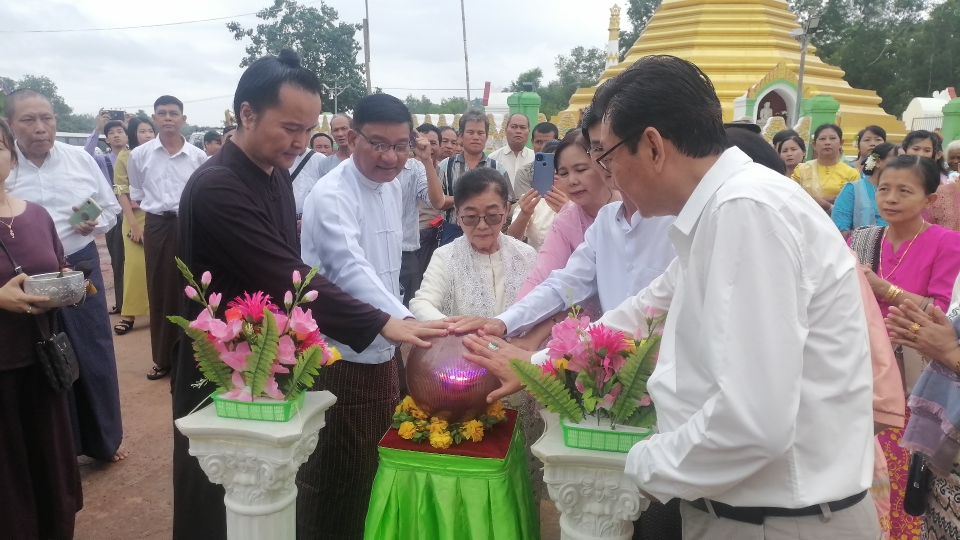 ဧရာဝတီတိုင်းဒေသကြီး၊ မြောင်းမြခရိုင်၊ မြောင်းမြမြို့ မြစိမ်းရောင်တောင်တော်သာသနာ့နယ်မြေ အမရဝတီဆင်ဖြူတောင်စေတီတော်မြတ်ကြီး ပရိဝုဏ်အတွင်းရှိ အင်းဝအာရုဏ်ခံတန်ဆောင်းတော်ကြီး ရေစက်ချမင်္ဂလာနှင့် တန်ဆောင်းတော်အတွင်းရှိ ဓမ္မစကြာမုနိဗုဒ္ဓရုပ် ပွားတော်မြတ်ကြီး ဗုဒ္ဓဘိသေကဘုရားအနေကဇာတင်ခြင်း အလှူတော်မင်္ဂလာအခမ်းအနားကို ယနေ့နံနက် ၈ နာရီခွဲအချိန်က ကညင်ချောင်းကျေးရွာအုပ်စု၊ မြစိမ်းရောင်တောင်တော်၌ ကျင်းပပြုလုပ်ခဲ့သည်။