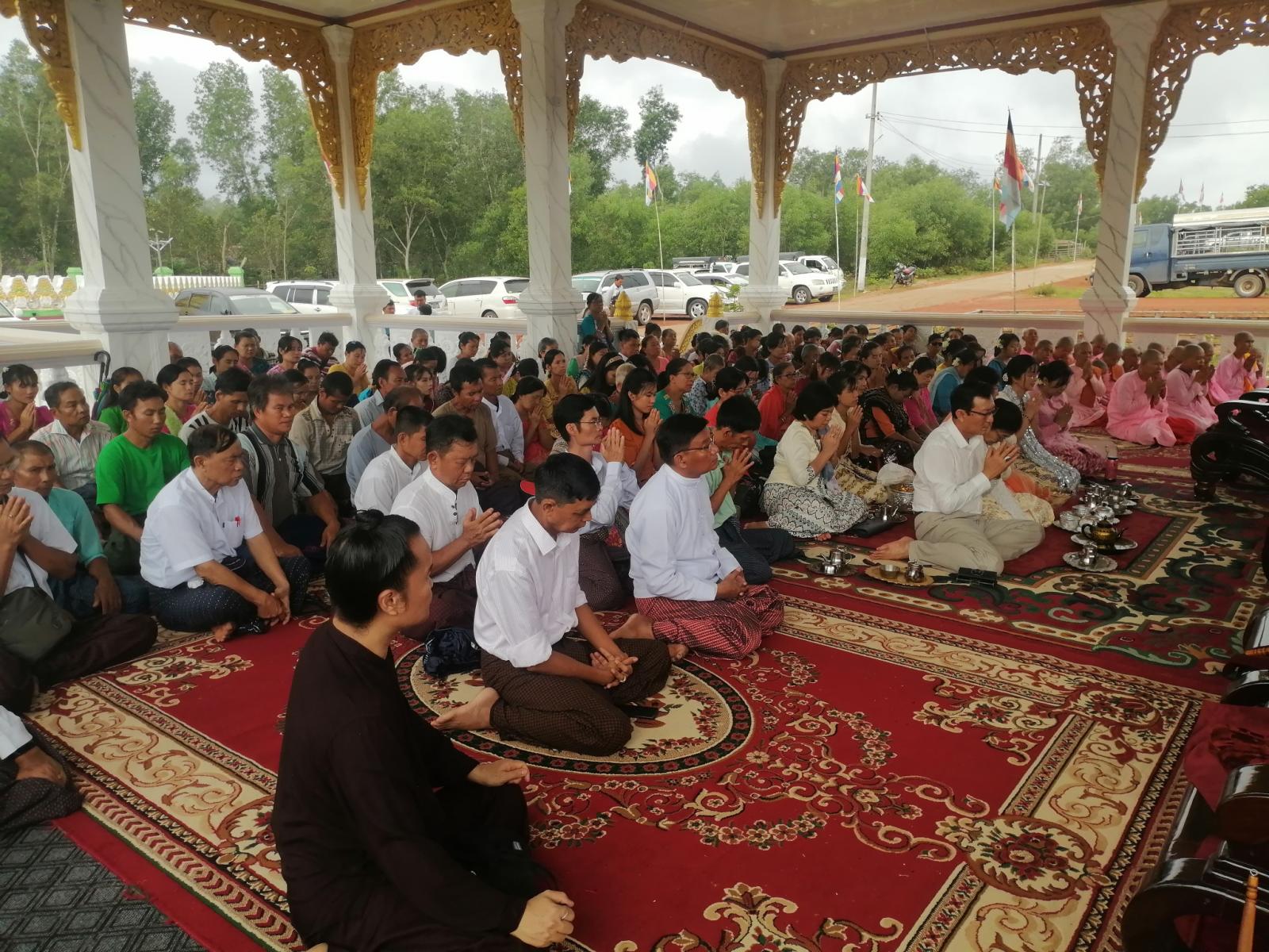 ထို့နောက် နိုင်ငံတော်ဗဟိုဝန်ဆောင် အဂ္ဂမဟာပဏ္ဍိတ အဂ္ဂမဟာသဒ္ဓမဇောတိကဓဇ အလယ်တောရ ကျောင်းတိုက်ဆရာတော် ဘဒ္ဒန္တပညာသီဟ မဟာထေရ်မြတ်ထံမှ ငါးပါးသီလခံယူ၍ ရေစက်သွန်းချ အမျှပေးဝေကာ ဗုဒ္ဓသာသနံစိရံတိဋ္ဌတု(၃) ကြိမ်ရွတ်ဆို ဘုရားကန်တော့၍ အခမ်းအနားအား အောင်မြင်စွာရုပ်သိမ်းခဲ့ကြောင်း သိရသည်။