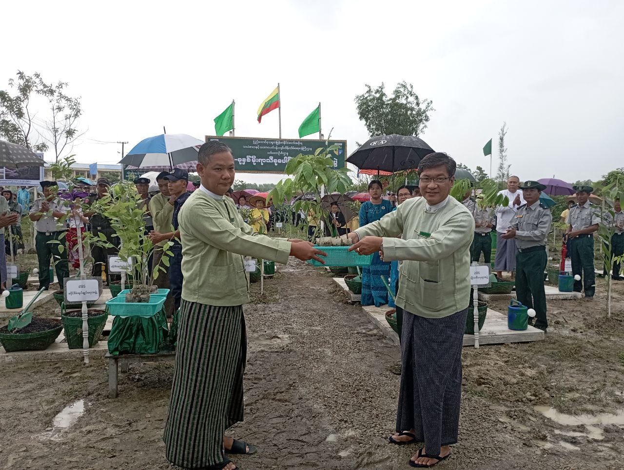ရှေးဦးစွာ ခရိုင်စီမံအုပ်ချုပ်ရေးအဖွဲ့ ဥက္ကဋ္ဌဦးလွင်ကိုဦးနှင့်အဖွဲ့ဝင်များ၊ မြို့နယ်စီမံအုပ်ချုပ်ရေးအဖွဲ့ဥက္ကဋ္ဌ ဦးသူရနှင့်အဖွဲ့ဝင်များ၊ ခရိုင်နှင့်မြို့နယ်အဆင့်ဌာနဆိုင်ရာများ၊ မြို့နယ်သစ်တောဦးစီးဌာန ဦးစီးအရာရှိဦးကျော်ဝင်းနိုင်နှင့်ဝန်ထမ်းများ၊ လူမှုရေးအသင်းအဖွဲ့များ၊ ဒေသခံပြည်သူများအား ပျိုးပင်များ ဖြန့်ဝေပေးအပ်သည်။