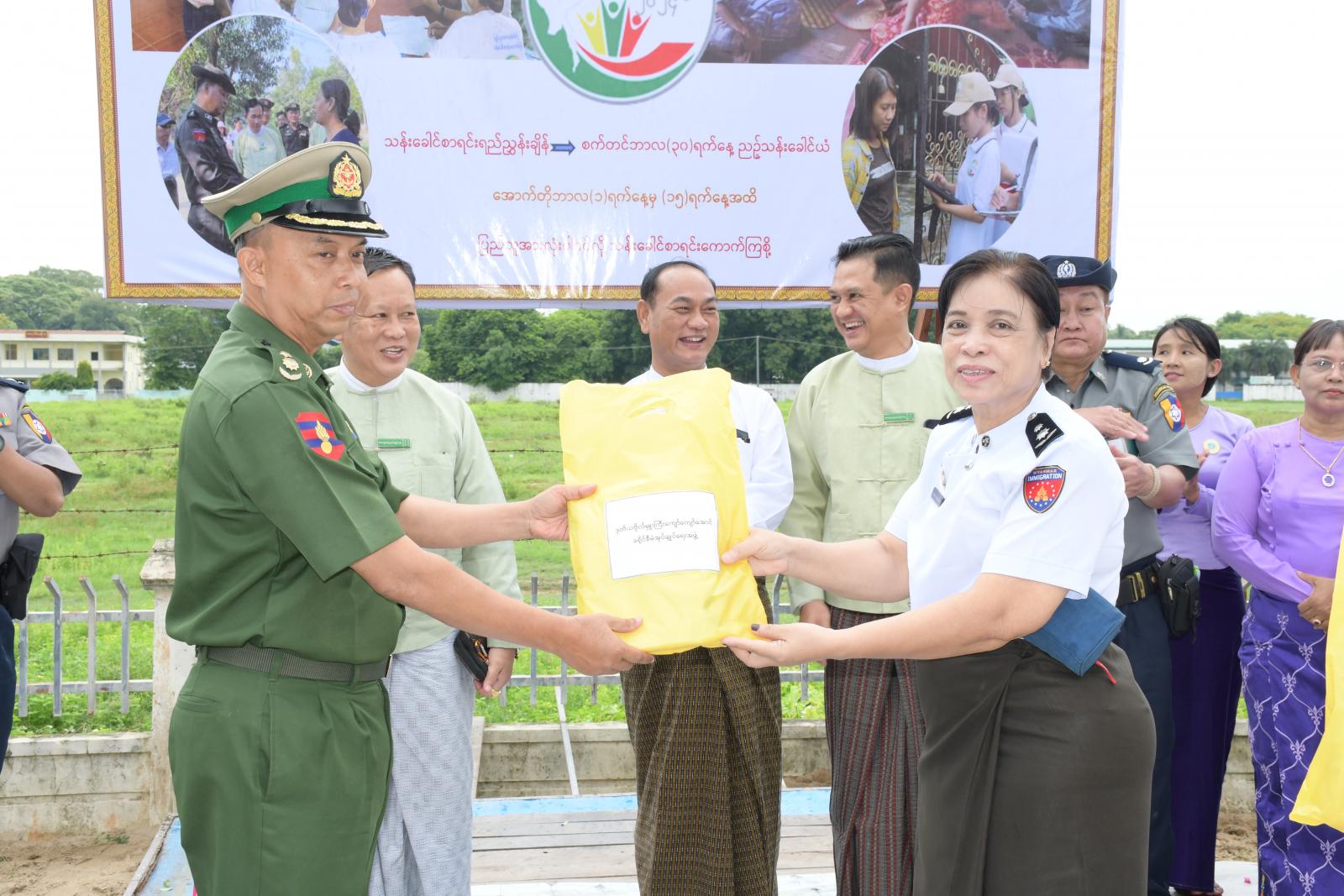 ထို့နောက် အောင်နိမိတ်သပြေပန်း ရေပက်ဖြန်းကာ လက်ဆောင်ပစ္စည်းများပေးအပ်သည်။ ၂၀၂၄ ခုနှစ်၊ လူဦးရေနှင့် အိမ်အကြောင်းအရာ သန်းခေါင်စာရင်းကောက်ယူခြင်းလုပ်ငန်းကို အောက်တိုဘာ ၁ ရက်နေ့မှ ၁၅ ရက်နေ့အထိ ဆောင်ရွက်သွားမည်ဖြစ်ကြောင်း သိရသည်။
