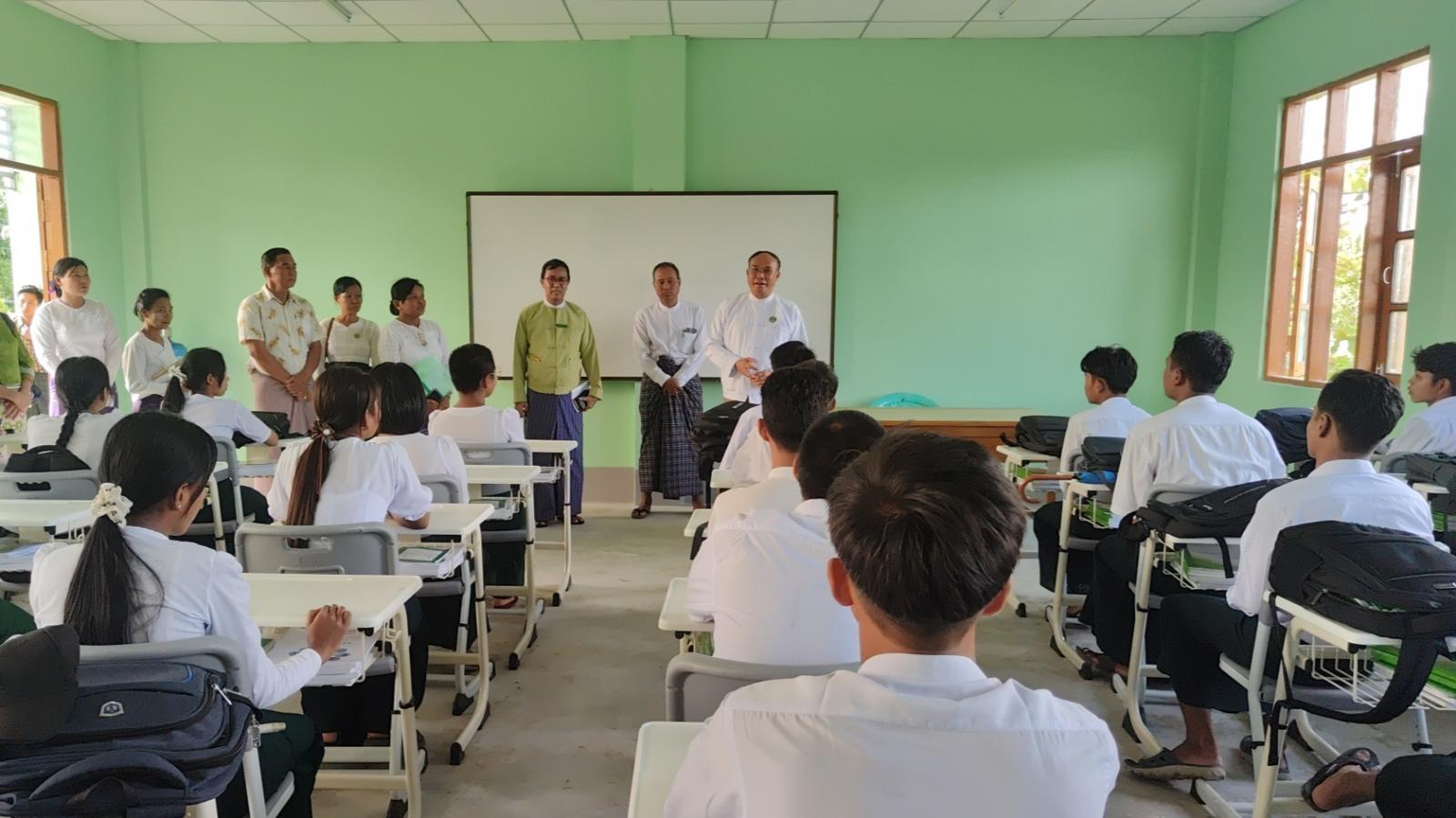 ဆက်လက်၍ လူမှုရေးရာဝန်ကြီးနှင့် တာဝန်ရှိသူများသည် ညောင်တုန်းမြို့နယ်၊ စက္ကော့အခြေခံပညာ အထက်တန်းကျောင်းဝန်းအတွင်းရှိ စိုက်ပျိုး၊ မွေးမြူရေးအထက်တန်းကျောင်း (စက္ကော့)သို့ ရောက်ရှိခဲ့ပြီး ဆရာ/ဆရာမများနှင့် ကျောင်းသား/ကျောင်းသူများအား တွေ့ဆုံအားပေး၍ ဆရာ/ဆရာမ များက ၂၀၂၄-၂၀၂၅ ပညာသင်နှစ်အတွက် ဆောင်ရွက်ထားရှိမှုအခြေအနေများကို တင်ပြဆွေးနွေးရာ ဝန်ကြီးက လိုအပ်သည်များကို ဆွေးနွေးမှာကြားခဲ့ကြောင်း သိရသည်။
