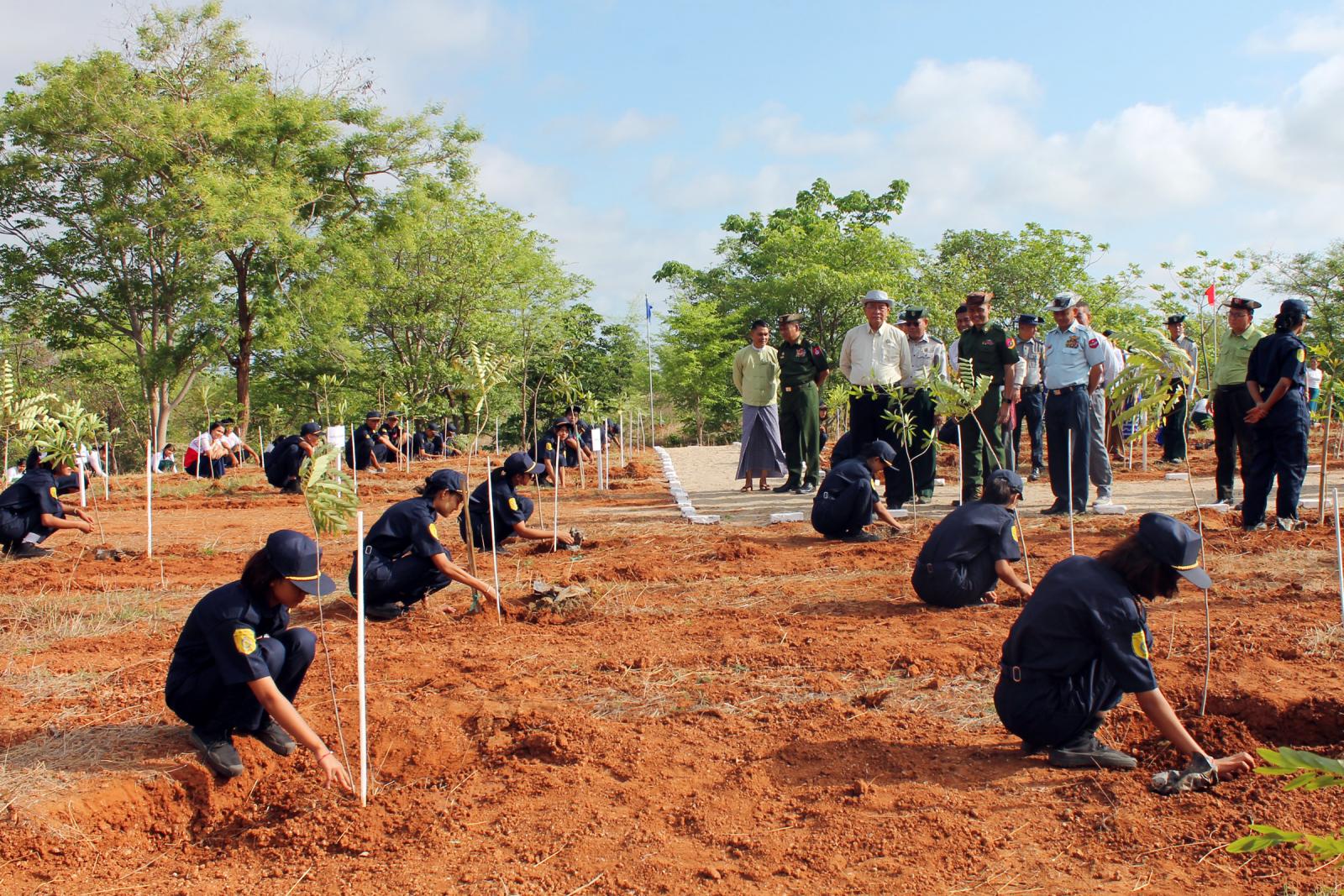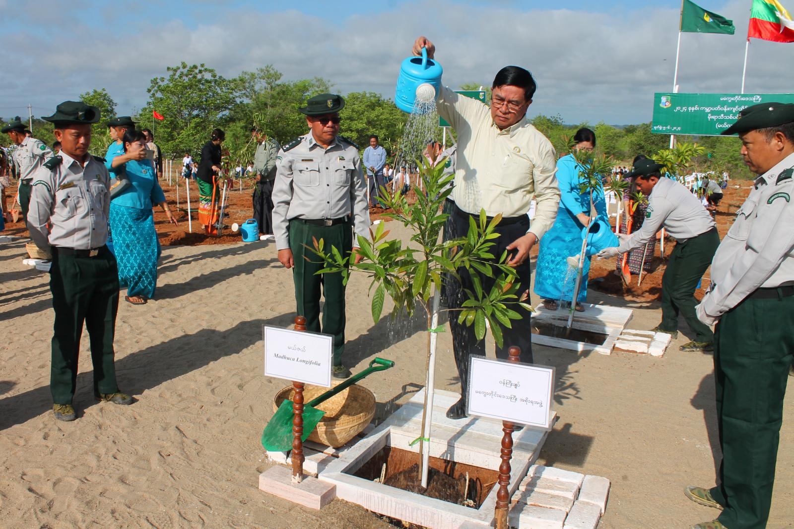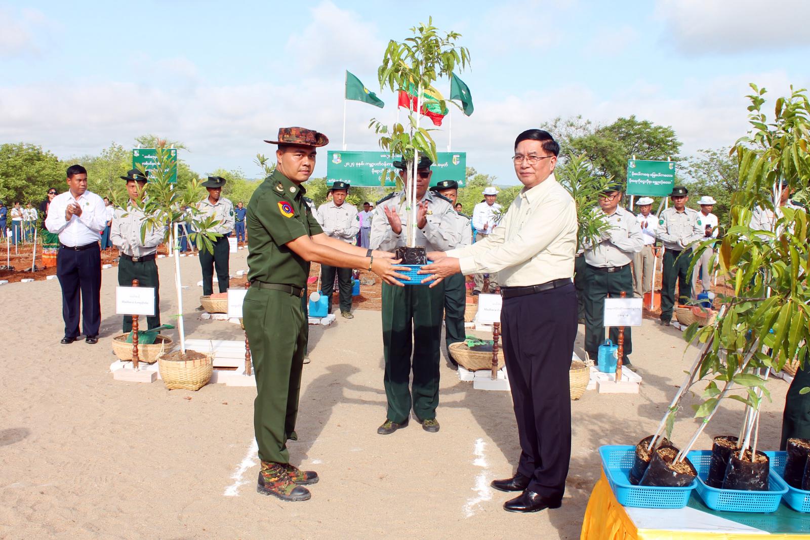 ဆက်လက်၍ မကွေးတိုင်းဒေသကြီးဝန်ကြီးချုပ်၊ အနောက်ပိုင်းလေတပ်ကွပ်ကဲမှုဌာနချုပ် ဌာနချုပ်မှူး၊ မကွေးတိုင်းဒေသကြီး အမျိုးသမီး ရေးရာအဖွဲ့ နာယကတို့က အမှတ်(၃)တပ်မတော် အကြီးစားစက်ရုံ၊ အမှတ်(၅)စက်မှုသင်တန်းကျောင်းနှင့် အမျိုးသမီးရေးရာအဖွဲ့တို့မှ တာဝန်ရှိ သူများထံ ပျိုးပင်များပေးအပ်ခဲ့ပြီး၊ တိုင်းဒေသကြီးအစိုးရအဖွဲ့ ဝန်ကြီးချုပ်နှင့်ဇနီး၊တိုင်းဒေသကြီးအစိုးရ အဖွဲ့ဝင်များ၊ တပ်နယ်ဆိုင်ရာ ပုဂ္ဂိုလ်များ၊ ဌာနဆိုင်ရာများ၊ အမှတ်(၃) တပ်မတော် အကြီးစားစက်ရုံ ဝန်ထမ်းများ၊ အမှတ်(၅)စက်မှူသင်တန်းကျောင်းမှ ဆရာ/ဆရာမ များနှင့် ကျောင်းသား/ကျောင်းသူများ၊ အသင်းအဖွဲ့များနှင့် ဒေသခံပြည်သူများ စုပေါင်း၍ တမာ (၂၀၀)၊ မယ်ဇယ် (၁၀၀)၊ မယ်ဇလီ(၁၅၀)၊ ကုလားကုက္ကိုလ် (၂၀၀)၊ ဆီသပြေ (၅၀)၊ ပန်းမယ်ဇလီ (၁၀၀)၊ ခရေ (၁၀၀)၊ ရေတမာ(၁၀၀) စုစုပေါင်းသစ်မျိုး(၈)မျိုး၊ စုစုပေါင်းပျိုးပင်(၁၀၀၀)ကို စိုက်ပျိုးခဲ့ကြပြီး၊ တိုင်းဒေသကြီးဝန်ကြီးချုပ်နှင့် တာဝန်ရှိသူများသည် သစ်ပင်စိုက်ပျိုးပွဲ တက်ရောက် လာသူများမှ စုပေါင်းသစ်ပင်စိုက်ပျိုးနေမှုကို လှည့်လည်အားပေးကြည့်ရှုခဲ့ကြကြောင်း သိရသည်။