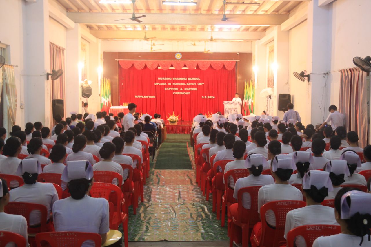 မွန်ပြည်နယ် သူနာပြုသင်တန်းကျောင်း (မော်လမြိုင်) ၏ အမျိူးသားကုတ်အင်္ကျီ/သူနာပြု ဦးဆောင်းအပ်နှင်းပွဲနှင့် ဆုချီးမြှင့်ပွဲ အခမ်းအနားကို ယမန်နေ့ မွန်းလွဲပိုင်းက မော်လမြိုင်မြို့၊ သူနာပြုသင်တန်းကျောင်း (မော်လမြိုင်)၊ သင်တန်းခန်းမဆောင်၌ ကျင်းပပြုလုပ်ရာ ပြည်နယ် ဝန်ကြီးချုပ်က မွန်ပြည်နယ်တွင် ကျန်းမာရေးစောင့်ရှောက်မှုကို ပုခုံးပြောင်းတာဝန်ယူမဲ့ မျိုးဆက် သစ်သူနာပြုမောင်မယ်များအဖြစ် ဦးဆောင်းနဲ့ ဝတ်စုံအပ်နှင်း တဲ့ပွဲဖြစ်လို့လည်း ဂုဏ်ယူ ဝမ်းမြောက်မိပါကြောာင်း၊ ကျန်းမာရေး ကဏ္ဍကိုမြှင့်တင်နိုင်ရန် ပါဝင်ဆောင်ရွက်နေကြတဲ့ သူနာပြုတွေရဲ့ ကျန်းမာရေးပြုစုမှု အရည်အသွေးတွေများသည် ခေတ်နဲ့အညီ တိုးတက်ရန် လိုအပ်ကြောင်း သူနာပြုသားဖွားဆရာ၊ဆရာမများသည် အနစ်နာခံခြင်း၊ သည်းခံခြင်း စေတနာ ထားခြင်း၊ ကြင်နာသနားခြင်း၊ ကရုဏာထားခြင်းဆိုသည့် အရည်အသွေးများကို ပိုင်ဆိုင်ထားပြီး လူမျိုးဘာသာ၊ အသားအရောင်၊ အဆင့်အတန်း မခွဲခြားဘဲ ပြုစုမှုပေးရမှာဖြစ်ကြောင်း၊ နိုင်ငံတော်ရဲ့ ကျန်းမာရေးကဏ္ဍ မြင့်မားတိုးတက်အောင် စွမ်းဆောင်နိုင်သော၊ ဘက်စုံထူးချွန်သော၊ ကိုယ်ရည်ကိုယ်သွေးမြင့်မားသော သူနာပြုလောင်းများမှသည် သူနာပြုကောင်းများ ဖြစ်လာပြီး နိုင်ငံ့အကျိုး၊ ပြည်သူ့အကျိုးကို သယ်ပိုးဆောင်ရွက်နိုင်ကြပါစေကြောင်း အမှာစကားပြောကြား သည်။