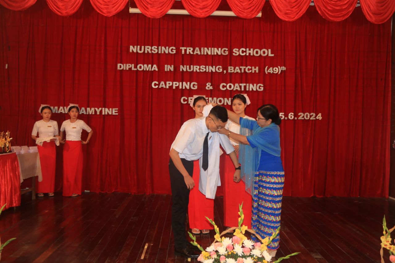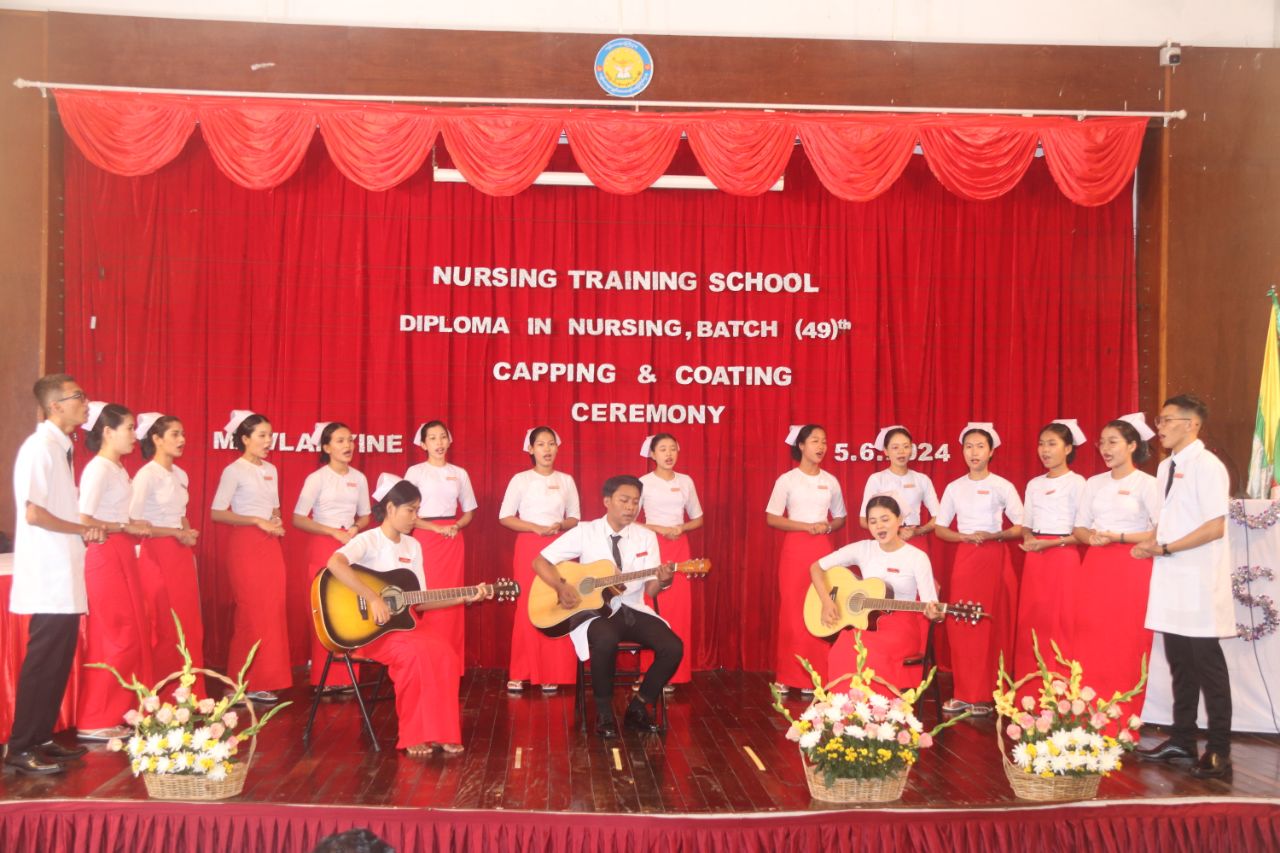 အဲဒီနောက် သူနာပြုသင်တန်းကျောင်း (မော်လမြိုင်)တွင် မျိုးသားကုတ်အင်္ကျီနှင့် ဦးဆောင်း ချီးမြှင့်အပ်နှင်းခြင်းခံရသည့် သင်တန်းသား/သူများက သူနာပြုကျင့်ဝတ် ရွတ်ဆို၍ “ဂရုဏာအလင်း” သီချင်းဖြင့် သီဆိုဖျော်ဖြေတင်ဆက်ခဲ့ကြပြီး သင်တန်းသား၊ သင်တန်းသူများနှင့် စုပေါင်းမှတ်တမ်းဓာတ်ပုံ ရိုက်ကူးကာ ရင်းရင်းနှီးနှီးလိုက်လံနှုတ်ဆက်ခဲ့ကြောင်း သိရသည်။