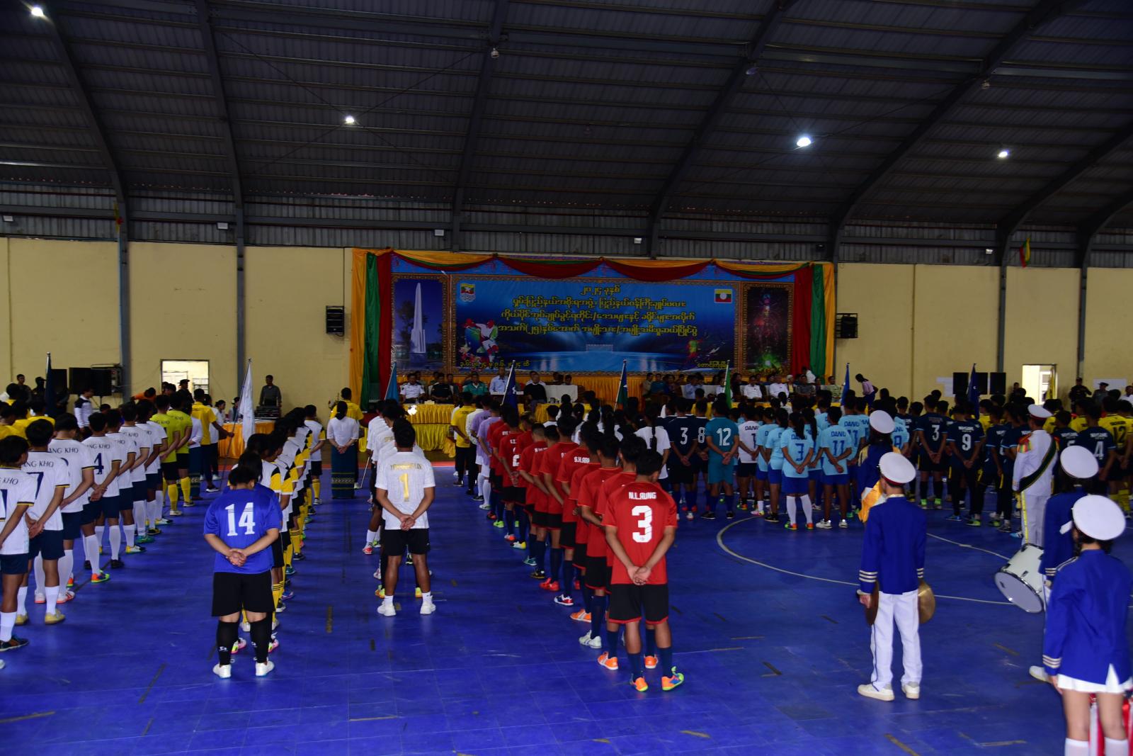 ဆက်လက်၍ ပြိုင်ပွဲဝင်အသင်းများမှ အားကစားသစ္စာအဓိဌာန်ရွတ်ဆိုကြပြီး ရှမ်းပြည်နယ်ဝန်ကြီးချုပ်၊ ပြည်နယ်တရားလွှတော်တရားသူကြီးချုပ်၊ ပြည်နယ်ဝန်ကြီးများနှင့် တာဝန်ရှိသူတို့က ပြိုင်ပွဲဝင်အားကစားသမားများနှင့် ဒိုင်အဖွဲ့များအားလိုက်လံနှုတ်ဆက်ကြပြီး ပြည်နယ်ဝန်ကြီးချုပ်က အမှတ်(၁)အခြေခံပညာအထက်တန်းကျောင်း ဘင်ခရာတပ်ဖွဲ့အား ဂုဏ်ပြုချီးမြှင့်ငွေပေးအပ်၍ ပထမပွဲစဥ်အဖြစ် ပအိုဝ်းက်ုယ်ပိုင်အုပ်ချုပ်ခွင့်ရဒေသအသင်းနှင့် ကျိုင်းတုံခရိုင်အသင်းတို့ ယှဥ်ပြိုင်နေမှုကို ကြည့်ရှုအားပေးခဲ့ကြောင်း သိရသည်။