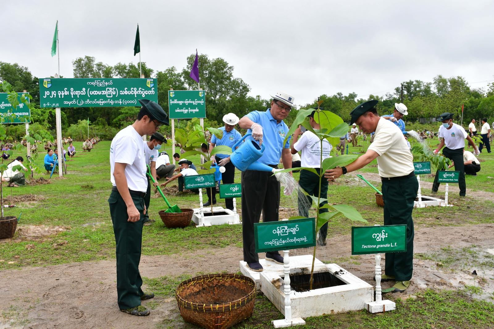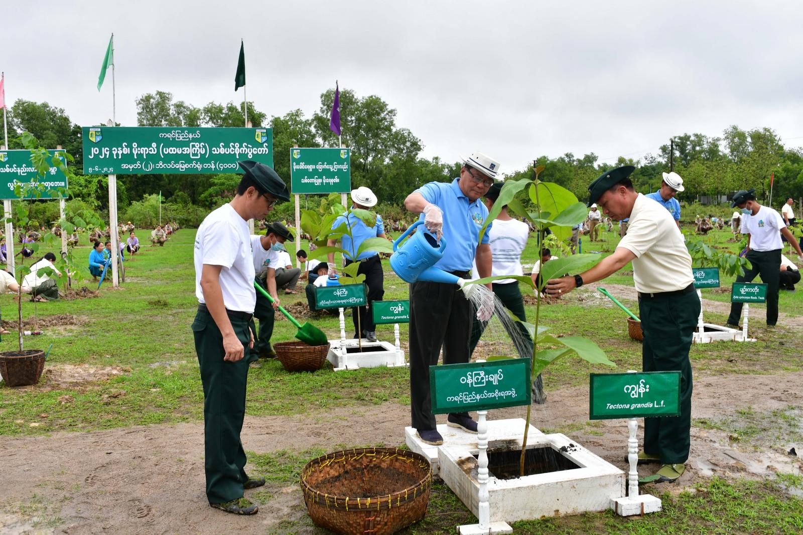 သစ်ပင်စိုက်ပွဲတွင် ကရင်ပြည်နယ်ဝန်ကြီးချုပ် ဦးစောမြင့်ဦးက ယခုမိုးရာသီသစ်ပင်စိုက်ပွဲတော်တွင် စိုက်ပျိုးသည့် သစ်တောသစ်ပင်များကို ထာဝစဉ်ရှင်သန်တည်မြဲစေရန်နှင့် သစ်တောသစ်ပင်များ၏ အကျိုးကျေးဇူးကို သားစဉ်မြေးဆက်ခံစားရရှိနိုင်စေရန်အတွက် အမျိုးသားရေးတာဝန်တစ်ရပ်အနေဖြင့် ပြည်သူတစ်ရပ်လုံးက ပူးပေါင်းပါဝင် စိုက်ပျိုးပြုစုထိန်းသိမ်းကြရမည်ဖြစ်ကြောင်း ပြောကြားပြီး အမှတ်(၂)ဘိလပ်မြေစက်ရုံ တန်(၄၀၀၀) စက်ရုံမှူးထံ ပျိုးပင်များ ဖြန့်ဝေပေးအပ်သည်။