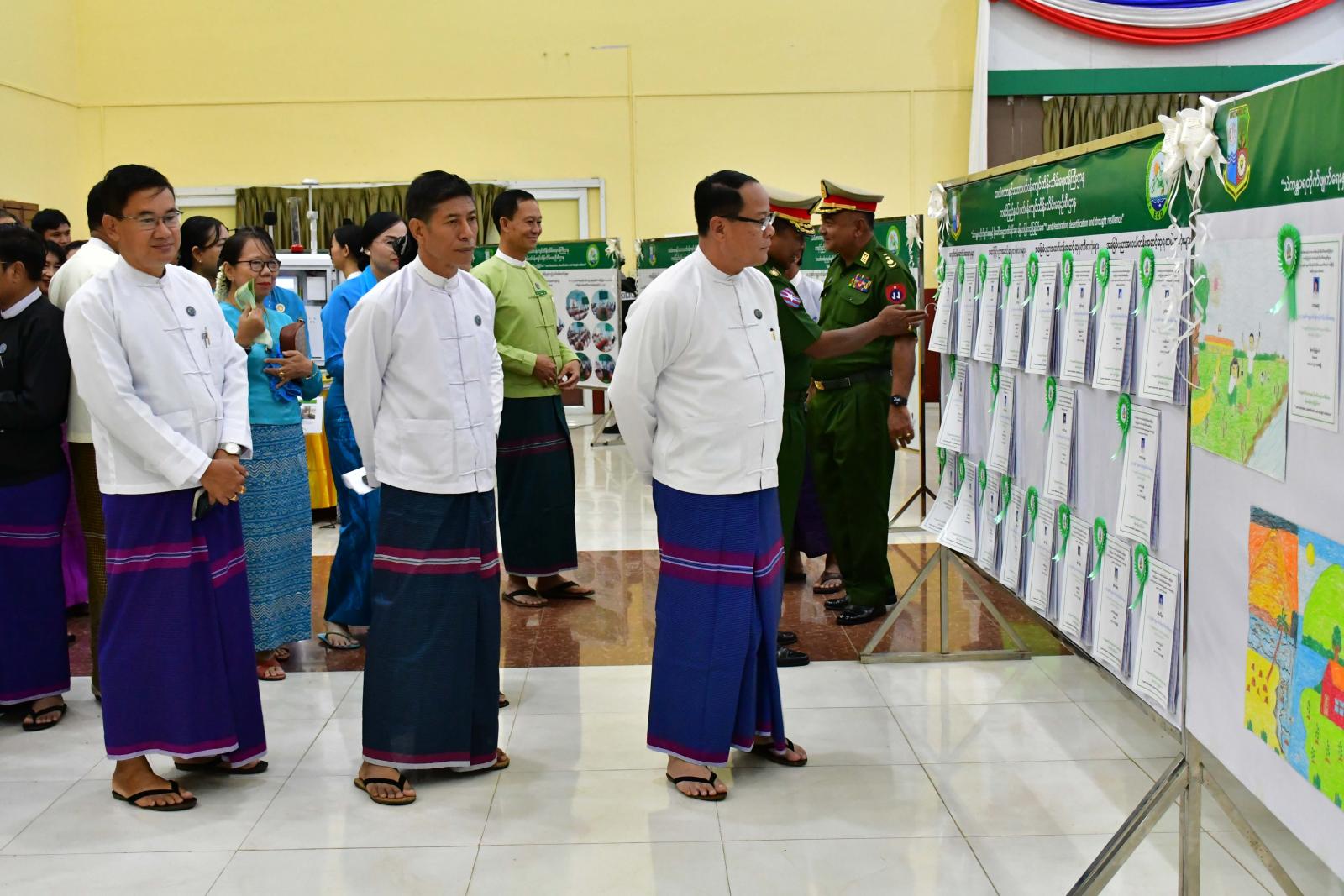 ယင်းနောက် ပြည်နယ်ဝန်ကြီးချုပ်နှင့်အဖွဲ့သည် အခမ်းအနားသို့တတ်ရောက်လာသူများအား ရင်းနှီးစွာ တွေ့ဆုံနှုတ်ဆက်၍ အားပေးစကားများပြောကြားခဲ့ကြပြီး ပတ်ဝန်ကျင်ထိန်းသိမ်းရေးနေ့ အထိမ်းအမှတ်အနေဖြင့် သဘာဝပတ်ဝန်းကျင်ထိန်းသိမ်းရေးဦးစီးဌာန၊ သစ်တောဦးစီးဌာနနှင့် ကျေးလက်ဒေသဖွံ့ဖြိုးတိုးတက်ရေးဦးစီးဌာနတို့ မှခင်းကျင်းပြသထားသော ပတ်ဝန်းကျင်ထိန်းသိမ်းရေးဆိုင်ရာလုပ်ငန်းဆောင်ရွက်မှုများ၊ သင်တန်းဖွင့်လှစ်ပို့ချမှု မှတ်တမ်းဓာတ်ပုံများ၊ ဆုရဆောင်းပါး၊ စာစီစာကုံး၊ ပန်းချီလက်ရာများကို လှည့်လည်ကြည့်ရှုအားပေးခဲ့ကြကြောင်း သတင်းရရှိသည်။