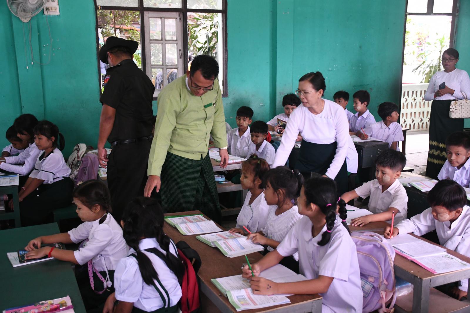 ထိုသို့စစ်ဆေးရာတွင် တာချီလိတ်ခရိုင် စီမံအုပ်ချုပ်ရေးအဖွဲ့ဥက္ကဋ္ဌ ဦးမင်းကိုနှင့် အဖွဲ့ဝင်များက ကျောင်းသား ကျောင်းသူများ ပညာသင်ကြားနေမှု၊ ဆရာ/ ဆရာမနှင့် ကျောင်းစာသင်ခန်းများ၊ စာသင်ခုံများ လုံလောက်မှု ရှိ/ မရှိ၊ ကျောင်းမုန့်ဈေးတန်း၌ ရောင်းချနေသောအစားအစာများ ကျန်းမာရေးနှင့် ညီညွှတ်မှု ရှိ/ မရှိ၊ ကျောင်းပတ်ဝန်းကျင်သန့်ရှင်းသာယာမှု ရှိ/ မရှိတို့အား ကြည့်ရူ့စစ်ဆေးရာ မြို့နယ်ပညာရေးမှူးနှင့် သက်ဆိုင်ရာ ကျောင်းအုပ်ကြီးများက လိုက်လံရှင်းလင်းပြသခဲ့ပြီး ကျောင်းအလိုက် လိုအပ်ချက်များအား ပေါင်းစပ်ဆောင်ရွက်ပေးခဲ့ကြောင်း သိရသည်။