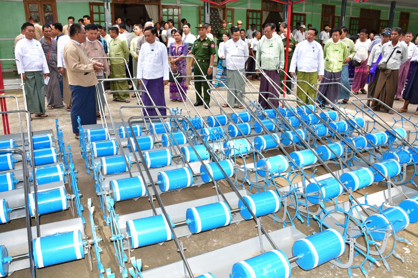 ယင်းနောက် နေပြည်တော်ကောင်စီဥက္ကဋ္ဌ ဦးသန်းထွန်းဦး၊ နေပြည်တော်ကောင်စီဝင်များက တာဝန်ရှိသူများက နေပြည်တော်အတွင်းရှိ မြို့နယ်အလိုက် မျိုးစေ့ချကိရိယာ Seeder များကို ပေးအပ်ရာ သက်ဆိုင်ရာမြို့နယ်များမှ တောင်သူများက လက်ခံရယူကြသည်။