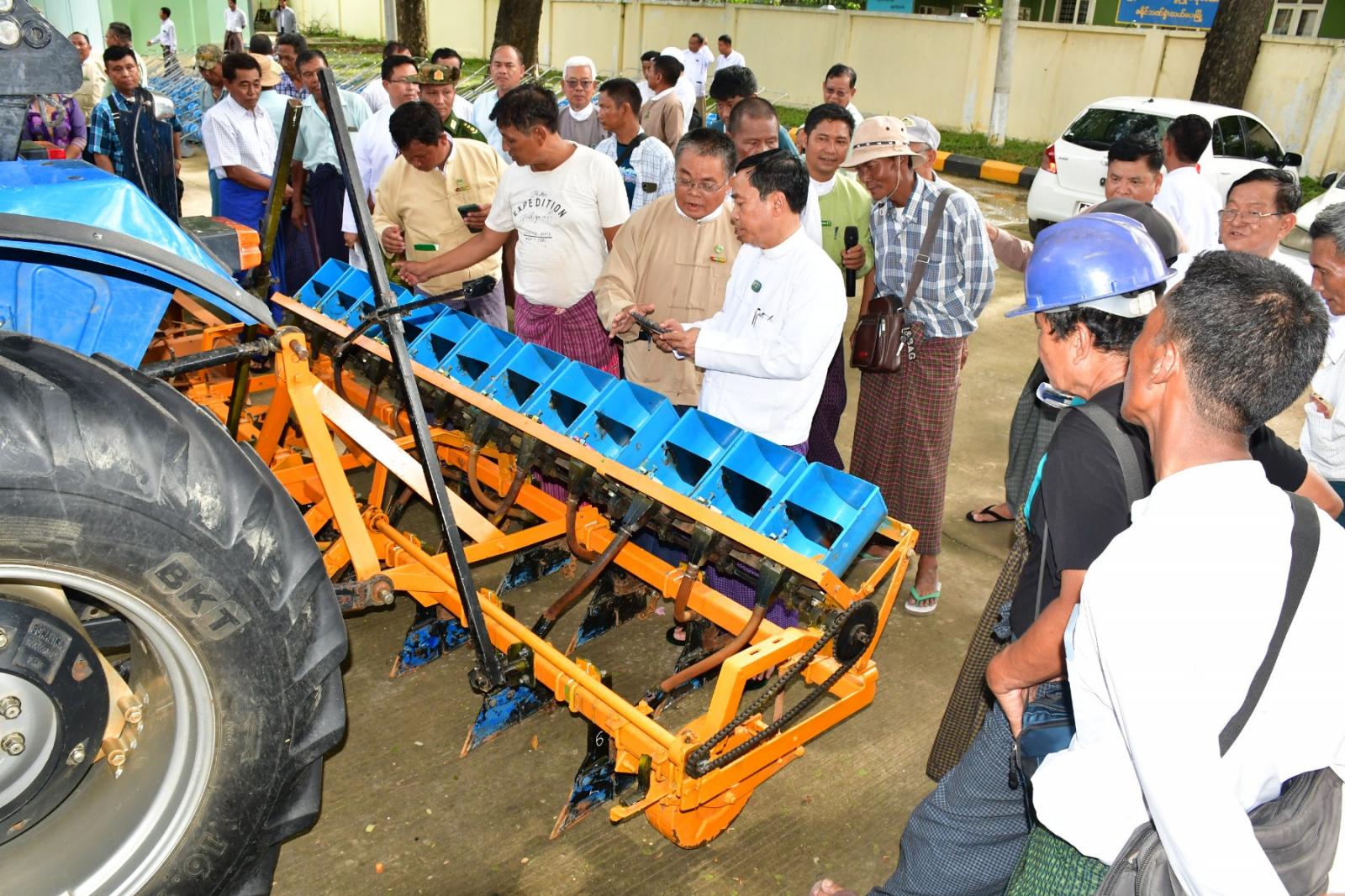 ထို့နောက် နေပြည်တော်ကောင်စီဥက္ကဋ္ဌ ဦးသန်းထွန်းဦး၊ နေပြည်တော်ကောင်စီဝင်များ၊ တာဝန်ရှိသူများ၊ တောင်သူများနှင့်အတူ မျိုးစေ့ချကိရိယာများအား လှည့်လည်ကြည့်ရှုအားပေးကြသည်။