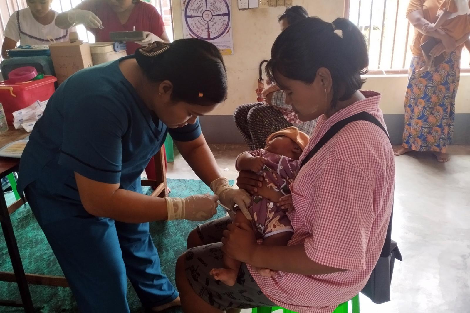 ကာကွယ်ဆေး ထိုးနှံပေးရာတွင်မွေးကင်းစမှ အသက် (၁)နှစ်ခွဲထိ ကလေးငယ်များကို ပုံမှန်ကာကွယ်ဆေး ထိုးနှံပေးရာတွင် အသက်(၂)လ ကလေးငယ်များကို ဘီစီဂျီ၊ ပြင်းထန်ဝမ်းပျက် ဝမ်းလျှော၊ ပိုလီယို၊ ပြင်းထန်းအဆုတ်ရောင်၊ ဆုံဆို့၊ ကြက်ညှာ၊ အသည်းရောင်အသားဝါ (ပထမအကြိမ်)၊ (၄)လအရွယ် ကလေးငယ်များကို ပိုလီယို၊ ပြင်းထန်းအဆုတ်ရောင်၊ ဆုံဆို့၊ ကြက်ညှာ၊ မေးခိုင်၊ အသည်းရောင်အသားဝါ (ဘီ)၊ ဦးနှောက်အမြှေးရောင် ဒုတိယအကြိမ်၊ (၆လ)မှာ တတိယအကြိမ် ထိုးနှံရပြီး အသက်(၉)လမှာ ဂျပန်ဦးနှောက်ရောင်၊ ဝက်သက်၊ ဂျိုက်သိုး ပထမအကြိမ်နှင့် အသက်(၁)နှစ်(ခွဲ)မှာ ဆုံဆို့၊ ကြက်ညှာ၊ မေးခိုင်၊ အသည်းရောင်အသားဝါ(ဘီ) ဦးနှောက်အမြှေးရောင် (ငါးမျိုးစပ်) ကာကွယ်ဆေးများကို စတုတ္ထအကြိမ်နှင့် ဝက်သက်-ဂျိုက်သိုး ကာကွယ်ဆေးများကို ဒုတိယအကြိမ် ထိုးနှံပေးလျက်ရှိကြောင်း သိရသည်။