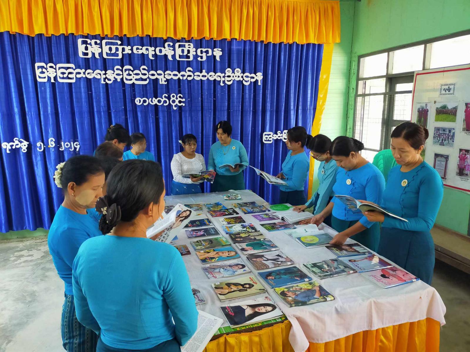 ထို့နောက် ပြန်ကြားရေးနှင့်ပြည်သူ့ဆက်ဆံရေးဦးစီးဌာနမှ ခင်းကျင်းပြသထားသော သုတ၊ ရသစာအုပ်မျိုးစုံအား တက်ရောက်လာကြသော မြို့နယ်အမျိုးသမီးရေးရာအဖွဲ့ဝင်များက စိတ်ပါဝင်စားစွာ ဖတ်ရှုလေ့လာကြကြောင်း သိရသည်။