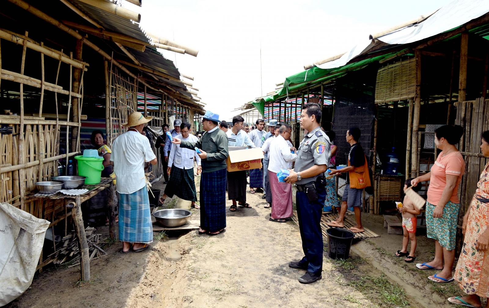 ထို့နောက် တက်ရောက်လာကြသည့် ယာယီနေရပ်စွန့်ခွာမိသားစုများက ယာယီခိုလှုံနေထိုင်ရာနေရာများ၌ ယာယီနေအိမ်အဆောက်အဦးတည်ဆောက်နေထိုင်ရာတွင် လိုအပ်ချက်များ၊ မိသားစုများ၏ ကျန်းမာရေးစောင့်ရှောက်မှုပေးရေး၊ ကလေးများ ပညာသင်ကြားနိုင်ရေး၊ သောက်သုံးရေ လုံလောက်စွာရရှိရေး စသည့် လိုအပ်ချက်များကို တင်ပြဆွေးနွေးကြရာ ပြည်နယ်ဝန်ကြီးချုပ်က လိုအပ်ချက်များအပေါ် သက်ဆိုင်ရာတာဝန်ရှိသူများနှင့် ပေါင်းစပ်ညှိနှိုင်း၍ ဖြည့်ဆည်းဆောင်ရွက်ပေးခဲ့ပြီး စခန်း(၆)ခုအတွင်း ယာယီခိုလှုံရာနေအိမ်အဆောက်အဦများ တည်ဆောက်နိုင်ရေး၊ ပညာရေးအတွက် သင်ထောက်ကူပစ္စည်းများ သယ်ယူနိုင်ရေး၊ ရေသန့်စက်တပ်ဆင်အသုံးပြုနိုင်ရေးတို့အတွက် စုစုပေါင်းငွေကျပ် ၈၀၅၀၀၀၀ ကို ထပ်မံထောက်ပံ့ပေးအပ်ခဲ့ကြသည်။