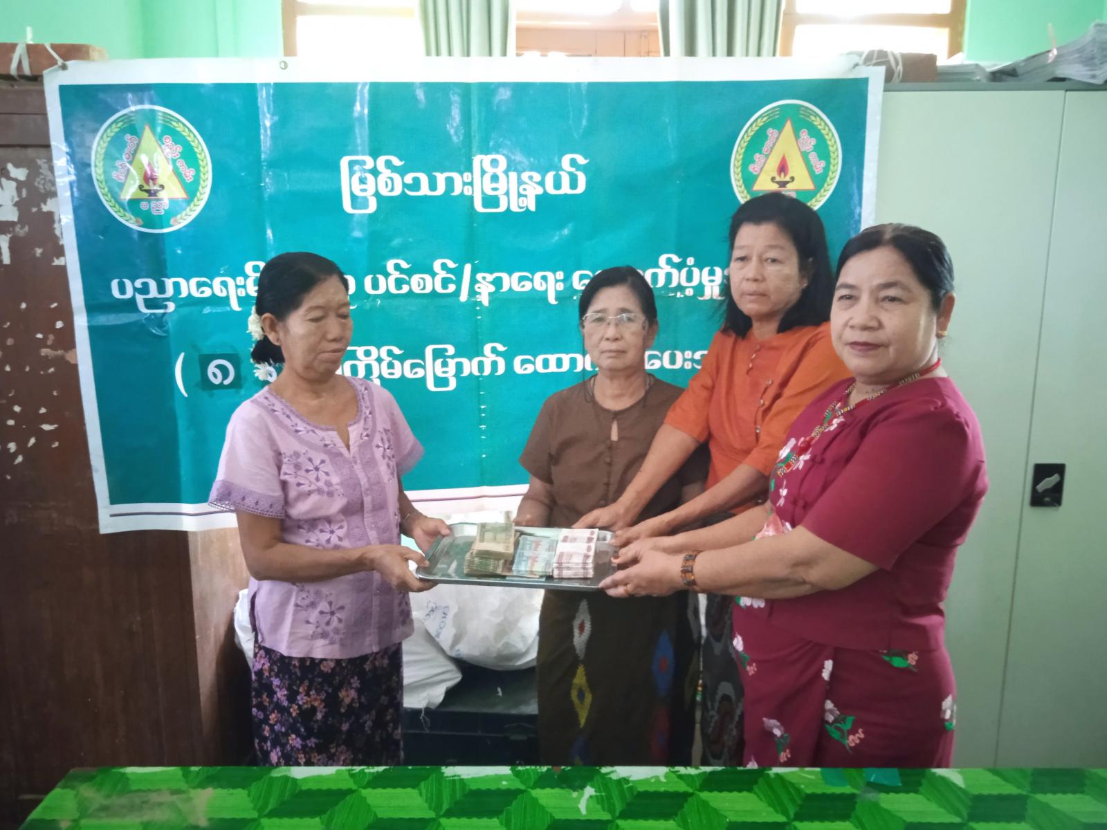 ရှေးဦးစွာ ထောက်ပံ့ငွေပေးအပ်ရာတွင် ပညာရေးမိသားစုပင်စင်/နာရေးထောက်ပံ့မှုအသင်းမှ ဒုတိယမြို့နယ်ပညာရေးမှူး ဦးကျော်ဟန်မှ မုဒိတာစကားပြောကြားခဲ့ပြီး ပညာရေးမိသားစုပင်စင်/နာရေး ထောက်ပံ့မှုအသင်းဝင် (၁၂၁၄)ဦးတို့မှ အလယ်တန်းပြဆရာမကြီး ဒေါ်ချိုချိုမင်း၊ မူလတန်းကျောင်းအုပ် ဆရာမကြီး ဒေါ်စန်းစန်းဝင်းနှင့် အထွေထွေလုပ်သားဒေါ်ရီရီမြင့်တို့အတွက် တစ်ဦးလျှင် ထောက်ပံ့ငွေ ကျပ် (၁၈၅၈၅၀၀ိ/-)ဖြစ်ပြီး စုစုပေါင်း(၃)ဦးတို့အတွက် ထောက်ပံ့ငွေကျပ်(၅၅၇၅၅၀၀ိ/-)အား တာဝန်ရှိသူများက ထောက်ပံ့ငွေများ ပေးအပ်ခဲ့ကြောင်း သိရသည်။