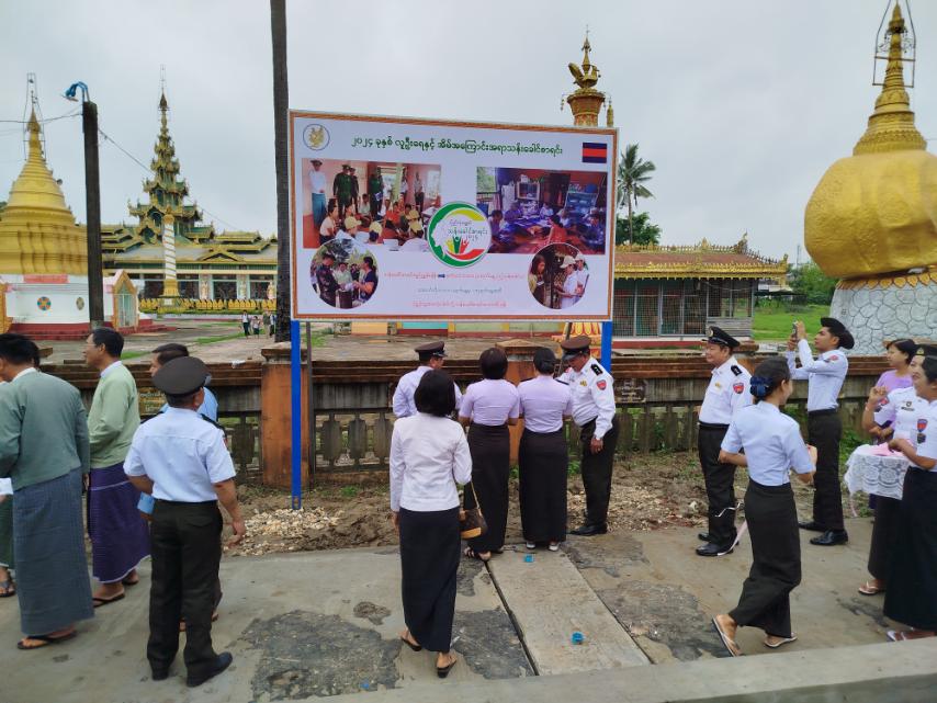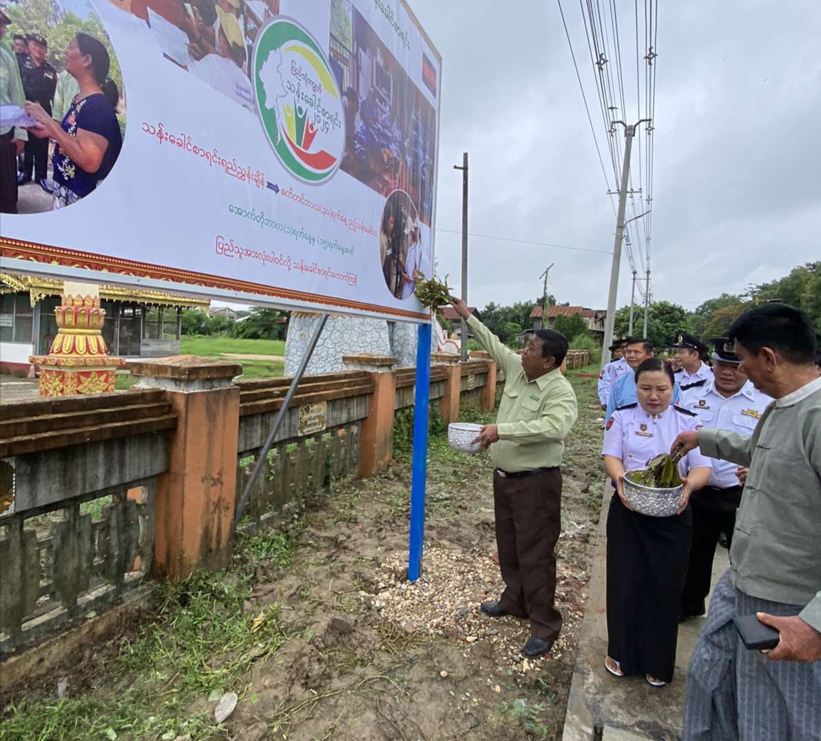 အဆိုပါ မြေစိုက်ပိုစတာဆိုင်းဘုတ် စိုက်ထူပွဲကို နတ်တလင်းခရိုင် အထွေထွေအုပ်ချုပ်ရေးဦးစီးဌာန ဒုတိယခရိုင်အုပ်ချုပ်ရေးမှူး ဦးဇော်မင်းနိုင်၊ လူဝင်မှုကြီးကြပ်ရေးနှင့်ပြည်သူအင်အားဝန်ကြီးဌာန နတ်တလင်းခရိုင်ရုံးမှ ခရိုင်ဦးစီးမှူး ဒေါ်ကေသီဝမ်၊ နတ်တလင်းခရိုင် စီမံအုပ်ချုပ်ရေးအဖွဲ့ဝင်(၂) ဦးခင်မောင်မြင့်၊ မြို့နယ်စီမံအုပ်ချုပ်ရေးအဖွဲ့ဥက္ကဋ္ဌ ဦးကျော်ကျော်ဦးနှင့် အဖွဲ့ဝင်များ၊ နတ်တလင်းခရိုင်အတွင်းရှိ မြို့နယ်လဝကဦးစီးမှူးများနှင့် ဝန်ထမ်းများ၊ နတ်တလင်းမြို့နယ်အဆင့် ဌာနဆိုင်ရာများမှ ဖဲကြိုးဖြတ်ဖွင့်လှစ်ပေးပြီး ဆိုင်းဘုတ်အား အမွှေးနံ့သာရည်များဖြင့် ဖြန်းပက်ပေးခဲ့ကြောင်း သိရသည်။