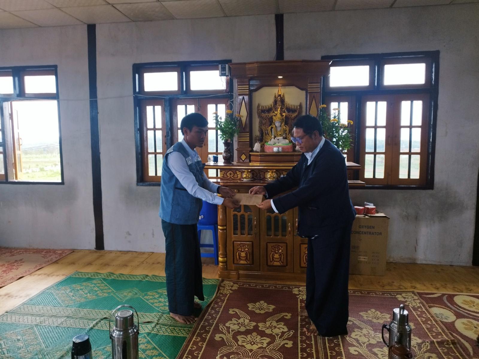 ရှမ်းပြည်နယ်တောင်ပိုင်း၊ ပအိုဝ်းကိုယ်ပိုင်အုပ်ချုပ်ခွင့်ရဒေသ၊ နောင်တရားမြို့ စန္တာခမ်းပအိုဝ်းအမျိုးသားဘက်စုံဖွံ့ဖြိုးရေးကွင်းကျောင်းဆောင်၌ နောင်တရားမြို့ မြို့အုပ်ချုပ်ရေးမှူး ဦးအယ်လ်အောင်ဒင်မိုင်နှင့် ပင်လောင်းမြို့နယ် ဘေးအန္တရာယ်ဆိုင်ရာစီမံခန့်ခွဲမှုဦးစီးဌာနမှ ဒုတိယဦးစီးမှူး ဒေါ်သဉ္စာတို့က နောင်တရားမြို့၌ မိုးသည်းထန်စွာရွာသွန်းပြီး လေပြင်းတိုက်ခတ်မှုကြောင့် ပျက်စီးသွားသည့် နေအိမ်များကို ယမန်နေ့မွန်းလွဲပိုင်းတွင် ထောက်ပံ့ငွေပေးအပ်ခဲ့ကြောင်း နောင်တရားမြို့ အထွေထွေအုပ်ချုပ်ရေးဦးစီးဌာနမှ သိရသည်။
