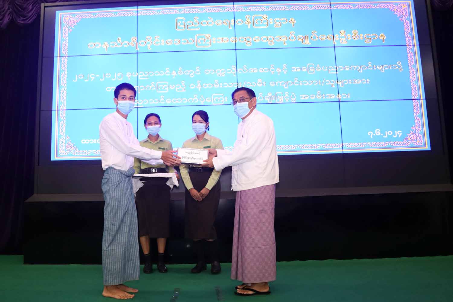 ထို့နောက် တိုင်းဒေသကြီး ဝန်ကြီးချုပ်၊ တိုင်းဒေသကြီးတရားလွှတ်တော် တရားသူကြီးချုပ်နှင့် တာဝန်ရှိသူများ၊ မိသားစုစည်းရုံးရေးနှင့် စည်းကမ်းထိန်းသိမ်းရေးကော်မတီတို့က တိုင်းဒေသကြီး အထွေထွေအုပ်ချုပ်ရေးဦးစီးဌာနရှိ တက္ကသိုလ်တက်ရောက်ပညာသင်ကြားနေသူ ဝန်ထမ်းများနှင့် ဝန်ထမ်းသား/သမီး စုစုပေါင်း(၃၈)ဦး၊ အထက်တန်းအဆင့်(၁၄)ဦး၊ အလယ်တန်းအဆင့်(၁၆)ဦး၊ မူလတန်းအဆင့်(၅၀)ဦး၊ မူကြိုအဆင့်(၁၂)ဦး၊ ဝန်ထမ်းများနှင့် ဝန်ထမ်းသား/သမီး စုစုပေါင်း (၁၃၀)ဦးတို့အတွက် ချီးမြှင့်ငွေကျပ် (၅,၂၁၀,၀၀၀/-) (ကျပ် ငါးဆယ်နှစ်သိန်းတစ်သောင်း တိတိ) အား ချီးမြှင့်ထောက်ပံ့ပေးအပ်ခဲ့ကြောင်း သတင်းရရှိသည်။