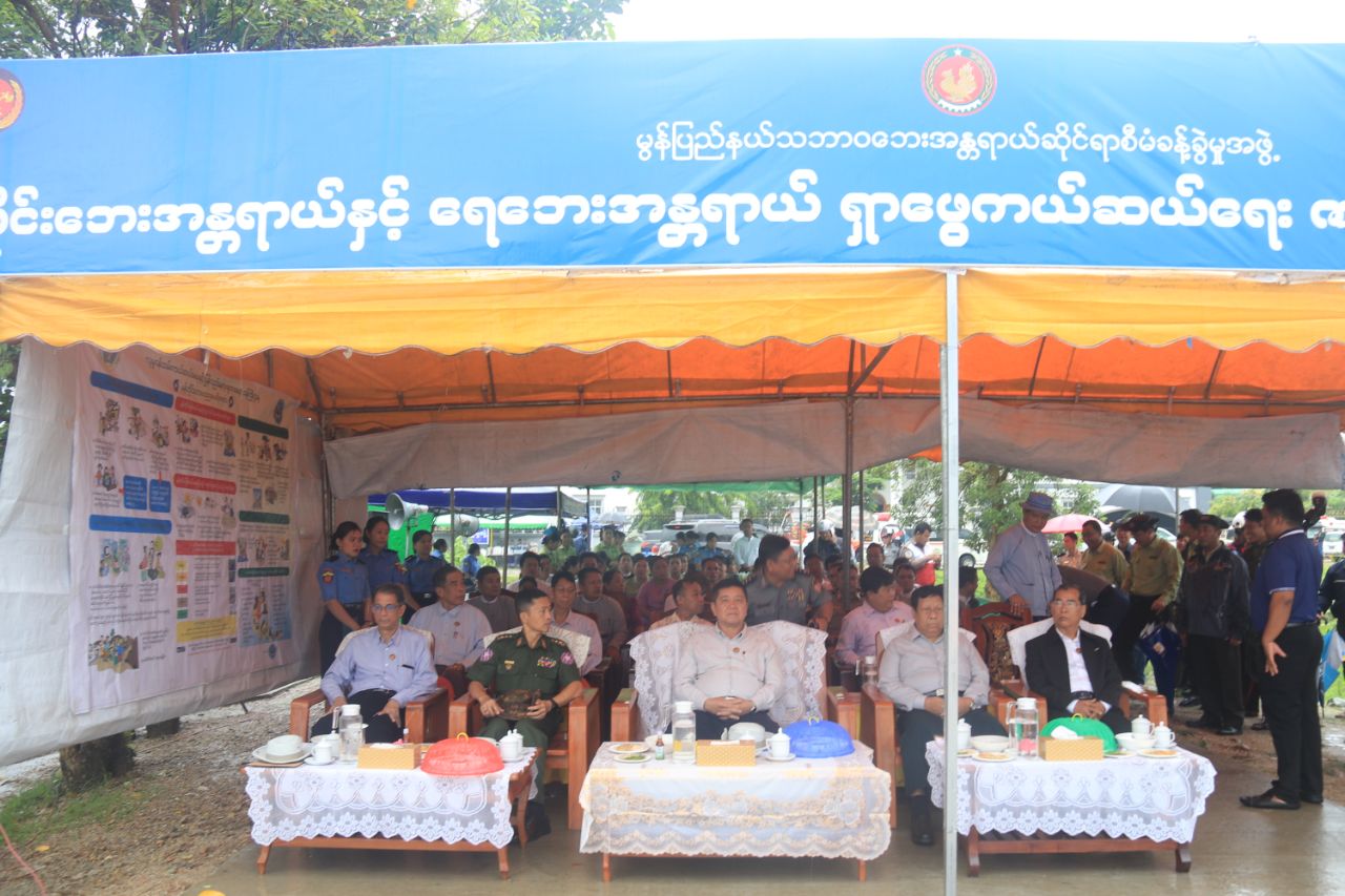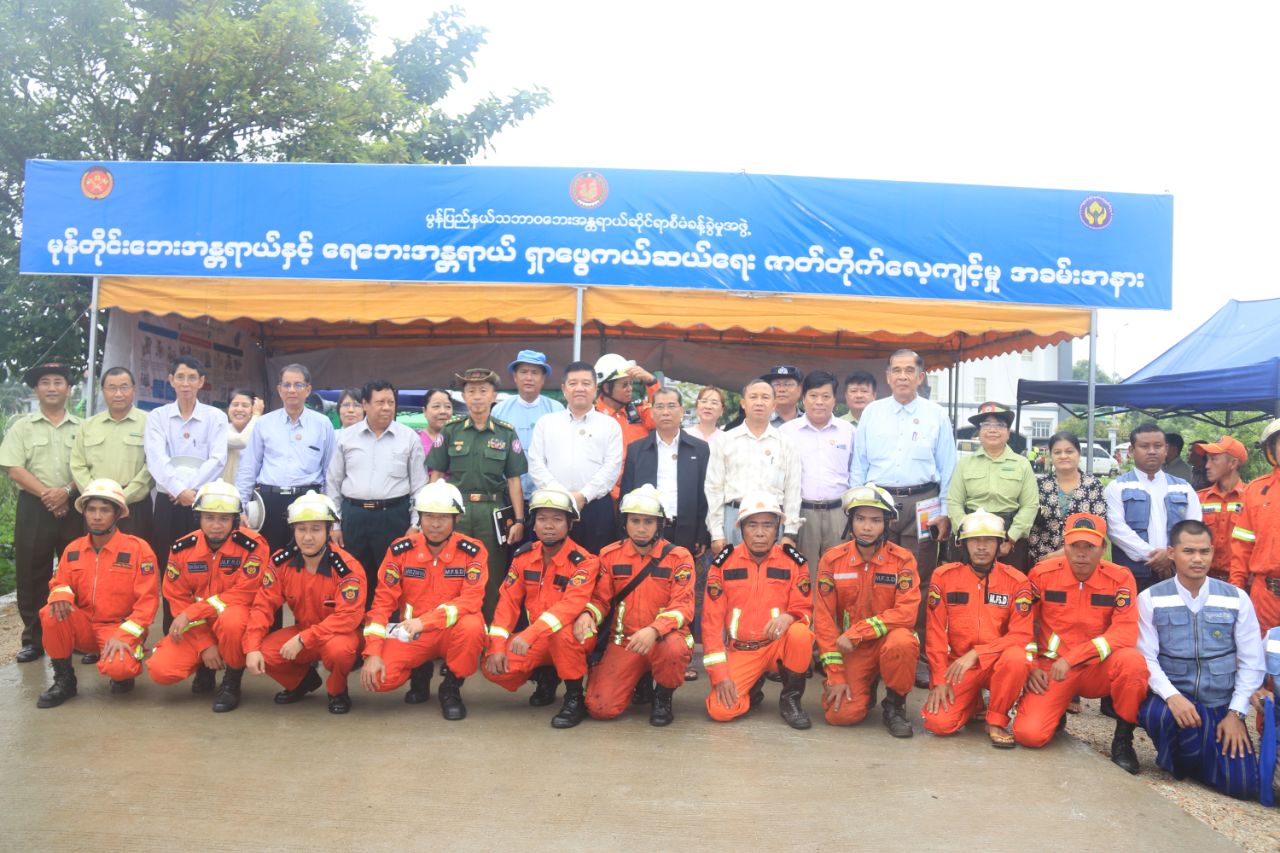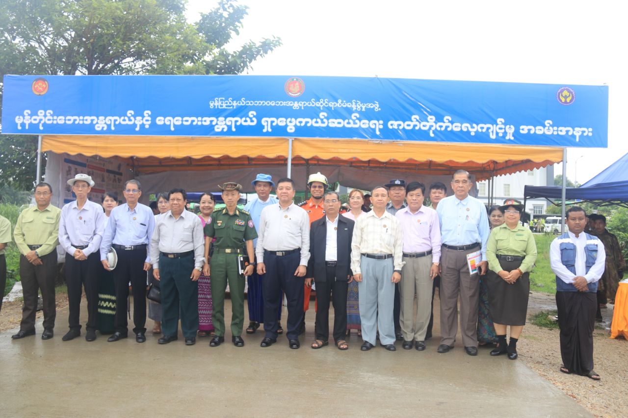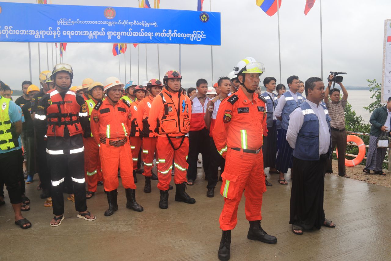 ရှေးဦးစွာရေဘေးကယ်ဆယ်ရေး ဇာတ်တိုက်လေ့ကျင့်ခန်းစတင်ဆောင်ရွက်ရာ ရေဘေးအတွက် နှိုးဆော်သတိပေးခြင်း၊ ရေဘေးကျရောက်နိုင်သော ဒေသများရှိ နေထိုင်သူများအား ရွှေ့ပြောင်းခြင်း၊ ရေစီးနှင့်အတူ မျှောလာသူများကိုကယ်ဆယ်ခြင်း၊ ရေဘေးသင့်နေရာများ၌ လှည့်လည်စစ်ဆေးဆောင်ရွက်ခြင်းနှင့် ယာယီကယ်ဆယ်ရေးစခန်းတွင် ဆေးဝါးကုသမှုနှင့် စားရေးရိက္ခာများဝေငှပြီး ထိခိုက်ဒဏ်ရာရရှိသူများအား ရှေးဦးသူနာပြုစုခြင်းနှင့် ဆေးရုံ/ ဆေးခန်းများသို့ ပို့ဆောင်ပေးခြင်း ဇာတ်တိုက်လေ့ကျင့်နေမှုများကို ပြည်နယ်ဝန်ကြီးချုပ်၊ ပြည်နယ်တရားလွှတ်တော် တရားသူကြီးချုပ်နှင့် ပြည်နယ်အစိုးရအဖွဲ့ဝင်ဝန်ကြီးများက ကြည့်ရှု အားပေးခဲ့သည်။