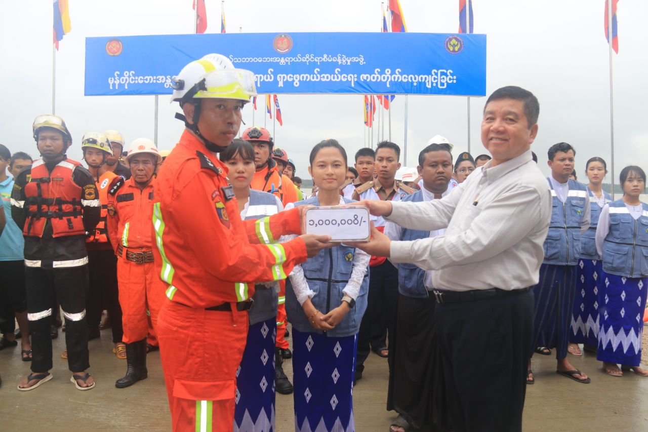 ဆက်လက်၍ ရေဘေးကယ်ဆယ်ရေးဇာတ်တိုက် သရုပ်ပြအဖွဲ့ဝင်များအား၊ ပြည်နယ်ဝန်ကြီးချုပ်က ဂုဏ်ပြုဆုငွေ ပေးအပ်ချီးမြှင့်ခဲ့ပြီး မွန်ပြည်နယ် လူမှုကယ်ဆယ်ရေး အသင်းအဖွဲ့များ၏ သဘာဝဘေးကယ်ဆယ်ရေးပစ္စည်းကိရိယာများ၊ အသက်ကယ်လှေများ၊ စုဆောင်းပြင်ဆင်ဆောင်ရွက်ထားရှိမှု အခြေအနေများကို လှည့်လည်ကြည့်ရှုအားပေးပြီး လိုအပ်သည်များကို ကူညီဖြည့်ဆည်း ဆောင်ရွက်ပေးခဲ့ကြောင်း သိရှိရသည်။