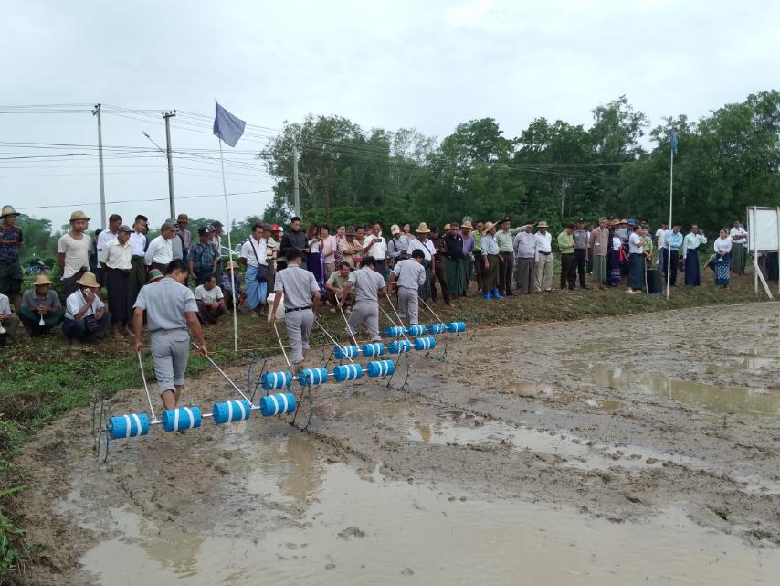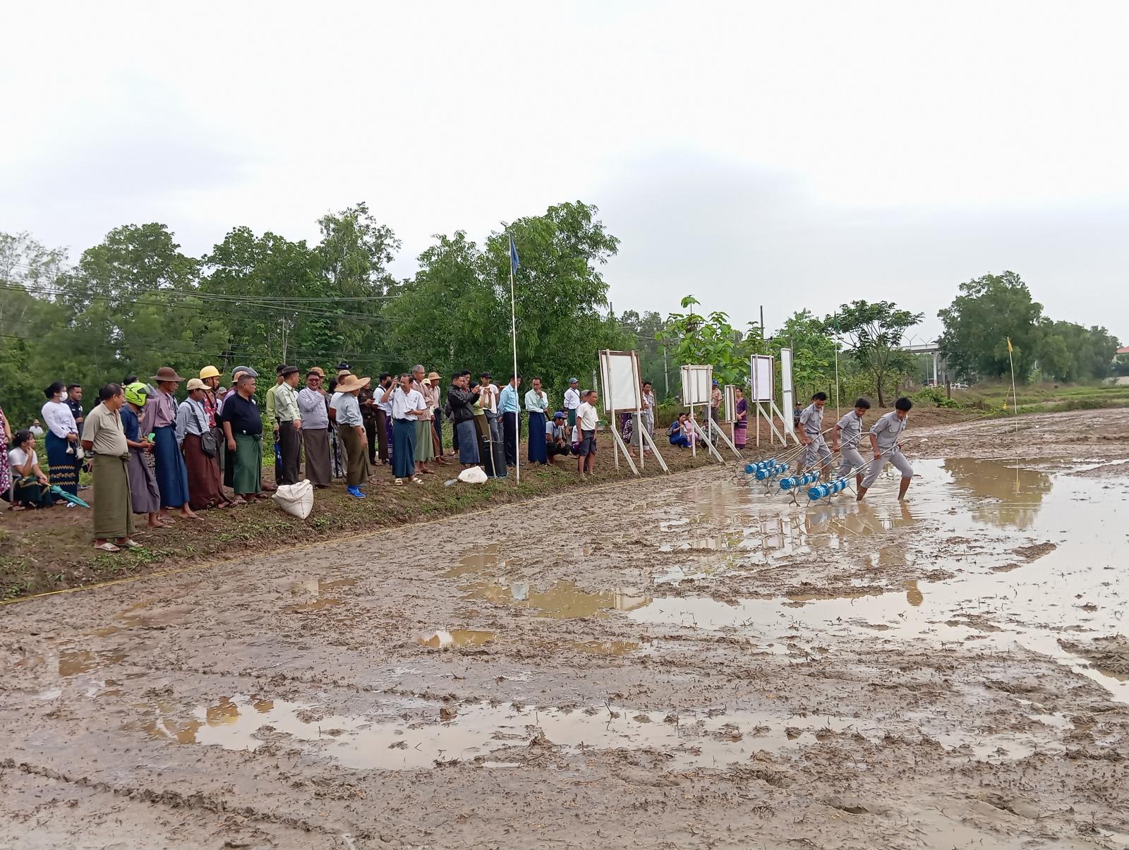 ရန်ကုန်တိုင်းဒေသကြီး၊ တွံတေးခရိုင်၊ ကော့မှူးမြို့နယ်တွင် တိုက်ရိုက်မျိုးစေ့ချကိရိယာ (Seeder) ဖြင့် မိုးစပါးလက်တွေ့ စိုက်ပျိုးပြသခြင်းကို ယနေ့နံနက် (၈) နာရီက မကျီးကန်ကျေးရွာ ကွင်းအမှတ် (၃၀၁)၊ ဦးပိုင်အမှတ် (၁၀/၁) ဧရိယာ (၈.၁၃) ရှိ တောင်သူ ဦးအေးကြိုင် ပိုင်လယ်မြေ၌ ကျင်းပပြုလုပ်ခဲ့သည်။ အခမ်းအနားတွင် မြို့နယ်စိုက်ပျိုးရေးဦးစီးဌာန၊ မြို့နယ်ဦးစီးမှူး ဦးသက်နိုင်က (Seeder) စပါးမျိုးစေ့ချကိရိယာဖြင့် တိုက်ရိုက်အစေ့ချ စိုက်ပျိုးခြင်းဖြင့် ရရှိနိုင်မည့် အကျိုးကျေးဇူးများဖြစ်သည့် တစ်ဧက မျိုးစေ့နှုန်းသက်သာခြင်း၊ လုပ်အားကုန်ကျစရိတ်သက်သာခြင်း၊ လုပ်ငန်းချိန်မြန်ဆန်ခြင်း၊ ပြောင်းလဲလာသည့် ရာသီဥတုနှင့်အညီ အချိန်နှင့်တပြေးညီ စိုက်ပျိုးနိုင်ခြင်း၊ ရိတ်သိမ်းရန် လွယ်ကူခြင်း၊ ဝင်ငွေတိုးတက်စေခြင်း စသည်တို့ကို ရှင်းလင်းဆွေးနွေးခဲ့ပြီးနောက် တောင်သူများ၏ မေးမြန်းချက်များကို ပြန်လည်ရှင်းလင်း ဆွေးနွေးပေးခဲ့သည်။
