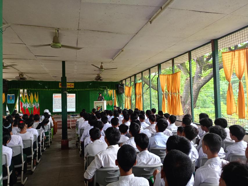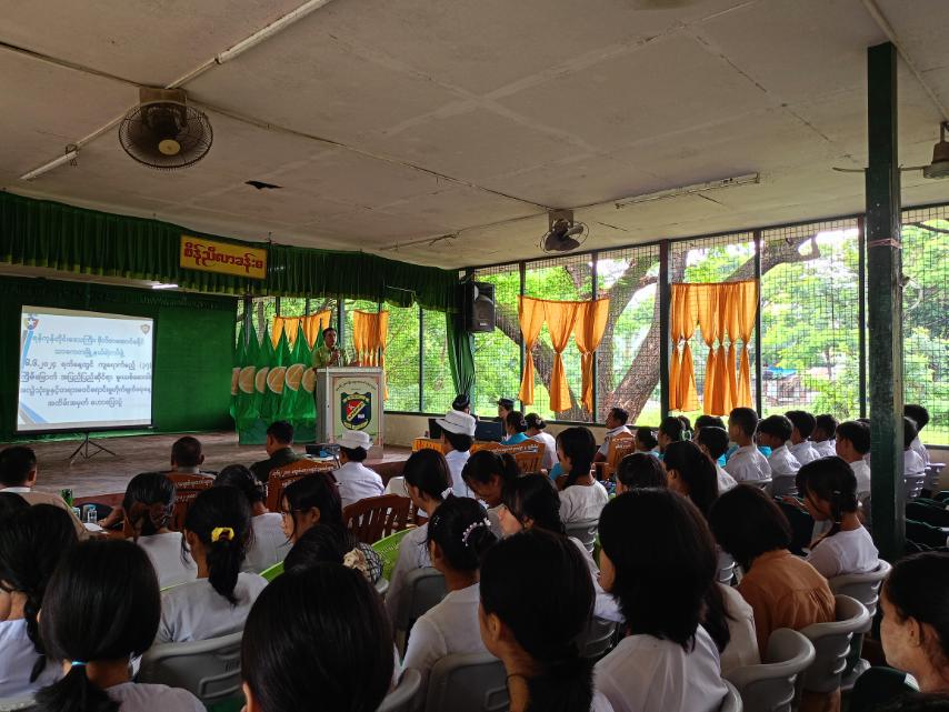 ၂၀၂၄-ခုနှစ်၊ဇွန်လ(၂၆)ရက်နေ့တွင် ကျရောက်မည့် အပြည်ပြည်ဆိုင်ရာ မူးယစ်ဆေးဝါး အလွဲသုံးမှုနှင့် တရားမဝင်ရောင်းဝယ်မှု တိုက်ဖျက်ရေးနေ့ အထိမ်းအမှတ်(အကြို) အသိပညာပေး ဟောပြောပွဲကို ယနေ့နံနက်(၉:၀၀)နာရီအချိန်၌ အမှတ်(၂)အခြေခံပညာအထက်တန်းကျောင်း စိန်ညီလာခန်းမ၌ကျင်းပခဲ့ရာ မြို့နယ်စီမံအုပ်ချုပ်ရေးအဖွဲ့၊ ဥက္ကဋ္ဌဦးကျော်သူနှင့်အဖွဲ့ဝင်များ၊ ဌာနဆိုင်ရာတာဝန်ရှိသူများ၊ မြို့နယ်အမျိုးသမီးရေးရာဥက္ကဋ္ဌ ဒေါ်ပြည့်ဖြိုးဝင်းနှင့်အဖွဲ့ဝင်များ ဆရာ၊ ဆရာမများ၊ ကျောင်းသား၊ ကျောင်းသူများ တက်ရောက်ခဲ့ကြောင်း သိရှိရသည်။