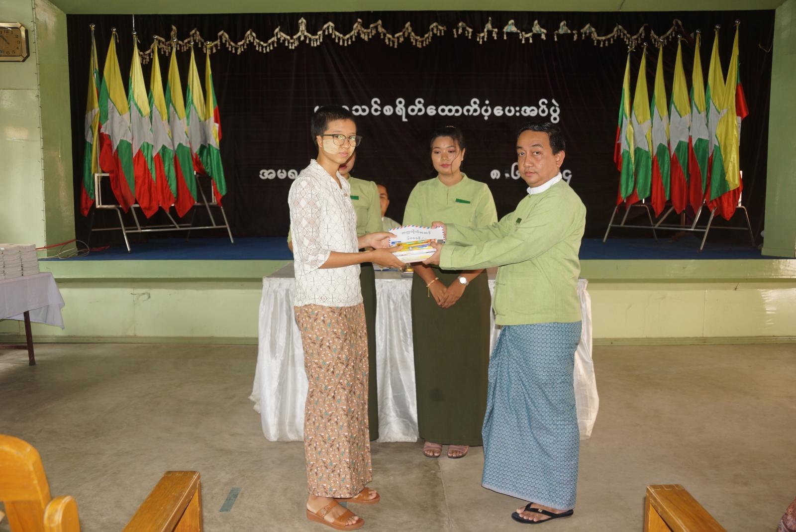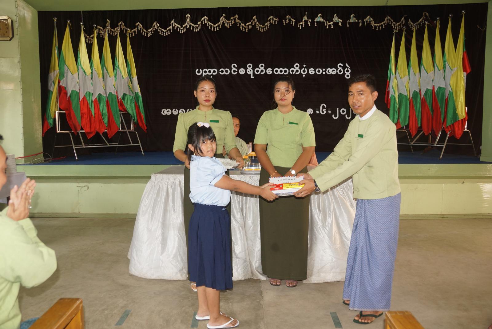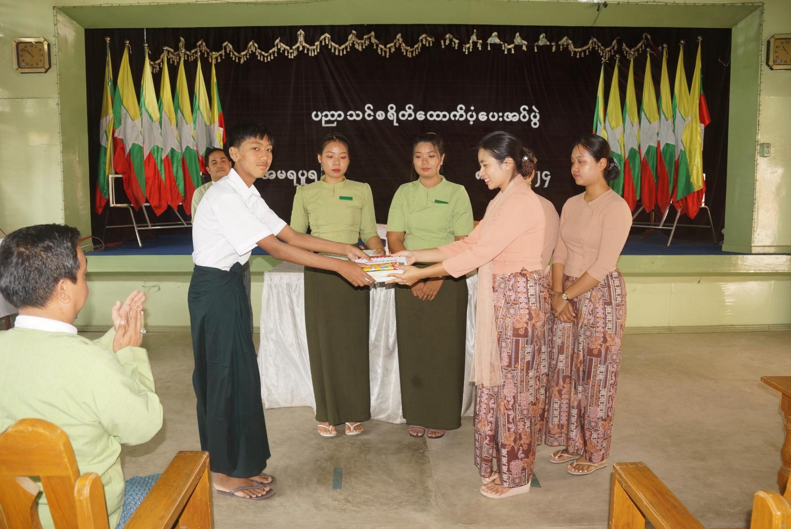 ယနေ့ ပညာသင် ထောက်ပံ့ကြေးပေးအပ်ပွဲတွင် မူလတန်းကြို ၅ ဦး အတွက် ထောက်ပံ့ငွေတစ်ဦး ၁၅၀၀၀ ကျပ်၊ ဗလာစာအုပ် တစ်ဒါဇင်၊ ခဲတံ ၂ ဒါဇင်၊ မူလတန်း ၂၁ ဦးအတွက် ထောက်ပံ့ငွေတစ်ဦး ၂၀၀၀၀ ကျပ်၊ ဗလာစာအုပ် တစ်ဒါဇင်၊ ခံတံနှစ်ဒါဇင်၊ အလယ်တန်း ၈ ဦးအတွက် ထောက်ပံ့ငွေ တစ်ဦး ၄၀၀၀၀ ကျပ်၊ စာအုပ်တစ်ဒါဇင်၊ ဘောပင် ၆ ချောင်း၊ အထက်တန်း ၇ ဦးအတွက် ထောက်ပံ့ငွေ တစ်ဦး ၅၀၀၀၀ ကျပ်၊ စာအုပ်တစ်ဒါဇင်၊ ဘောပင် ၆ ချောင်း၊ တက္ကသိုလ် ၁၃ အတွက် ထောက်ပံ့ငွေ တစ်ဦး ၆၀၀၀၀ ကျပ်၊ စာအုပ်တစ်ဒါဇင်၊ ဘောပင် ၆ ချောင်းတို့ကို ထောက်ပံပေးခဲ့ကြောင်း သိရသည်။ ယနေ့ထောက်ပံ့သည့် ကျောင်းသားဦးရေ ၅၄ ဦးရှိကြောင်း မြို့နယ်အထွေထွေအုပ်ချုပ်ရေးဦးစီးဌာနရုံးမှ သိရသည်။